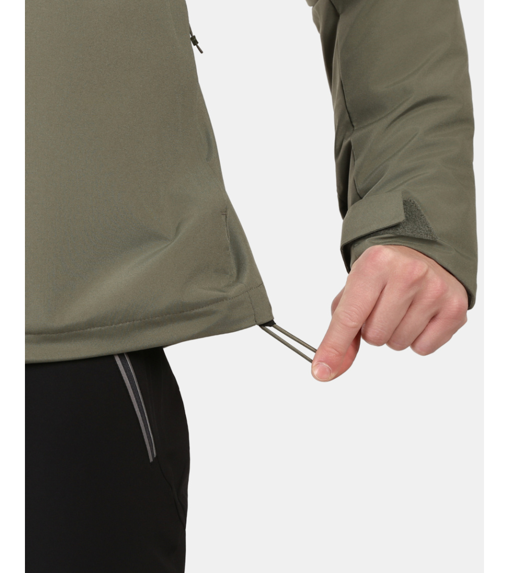 Kurtka ma stały kaptur ze ściągaczem, wysoki kołnierz chroniący szyję oraz boczne zamki wentylacyjne zapewniające wentylację podczas intensywnej aktywności. Mankiety zapinane na rzepy i ściągacz u dołu zapewniają idealne dopasowanie, a kieszenie główne, kieszeń na piersi i kieszeń wewnętrzna zapewniają mnóstwo miejsca na niezbędne drobiazgi.
