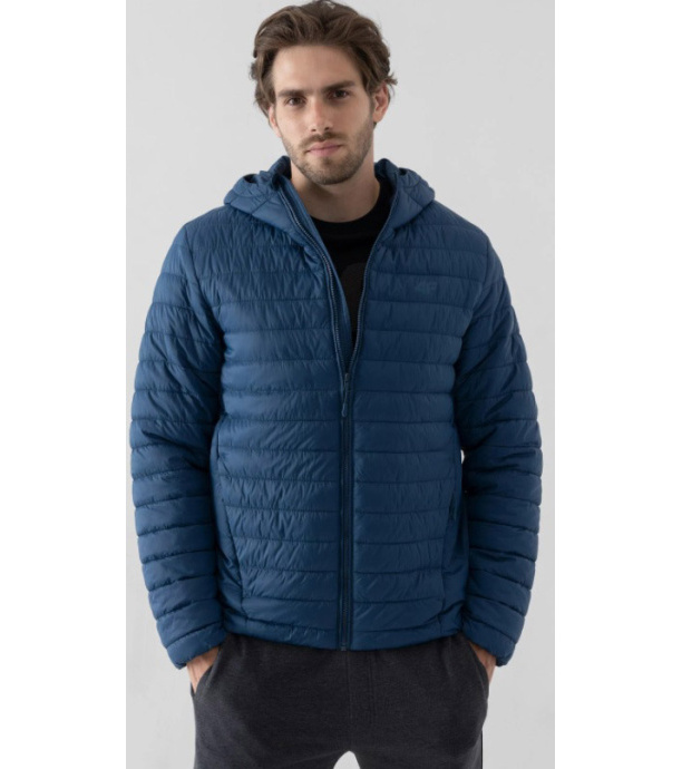 Męska lekka pikowana kurtka z wypełnieniem z syntetycznego puchu zapewnia optymalny komfort termiczny w okresie przejściowym. Kurtka ma zintegrowany kaptur, 2 kieszenie zapinane na suwak. Rękawy i dół są wyposażone w elastyczne ściągacze. Materiał jest impregnowany, aby ograniczyć wchłanianie wilgoci z zewnątrz. Główny zamek błyskawiczny jest zabezpieczony wewnętrzną wiatroszczelną klapą i wykończony osłoną podbródka.