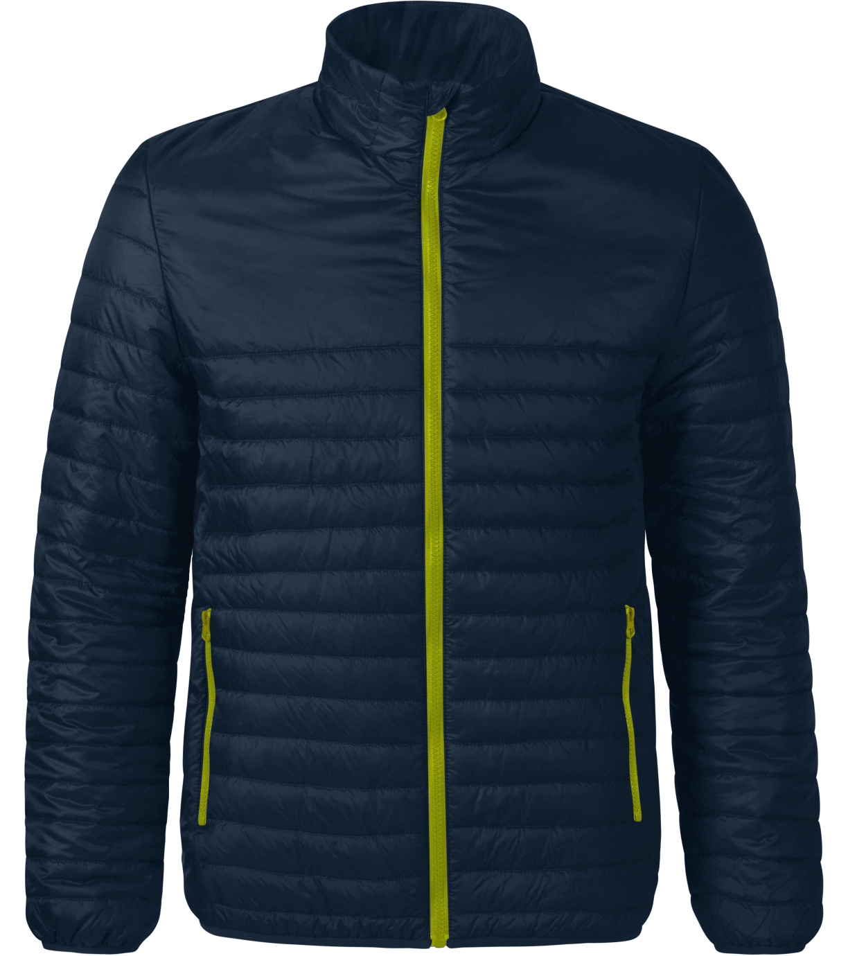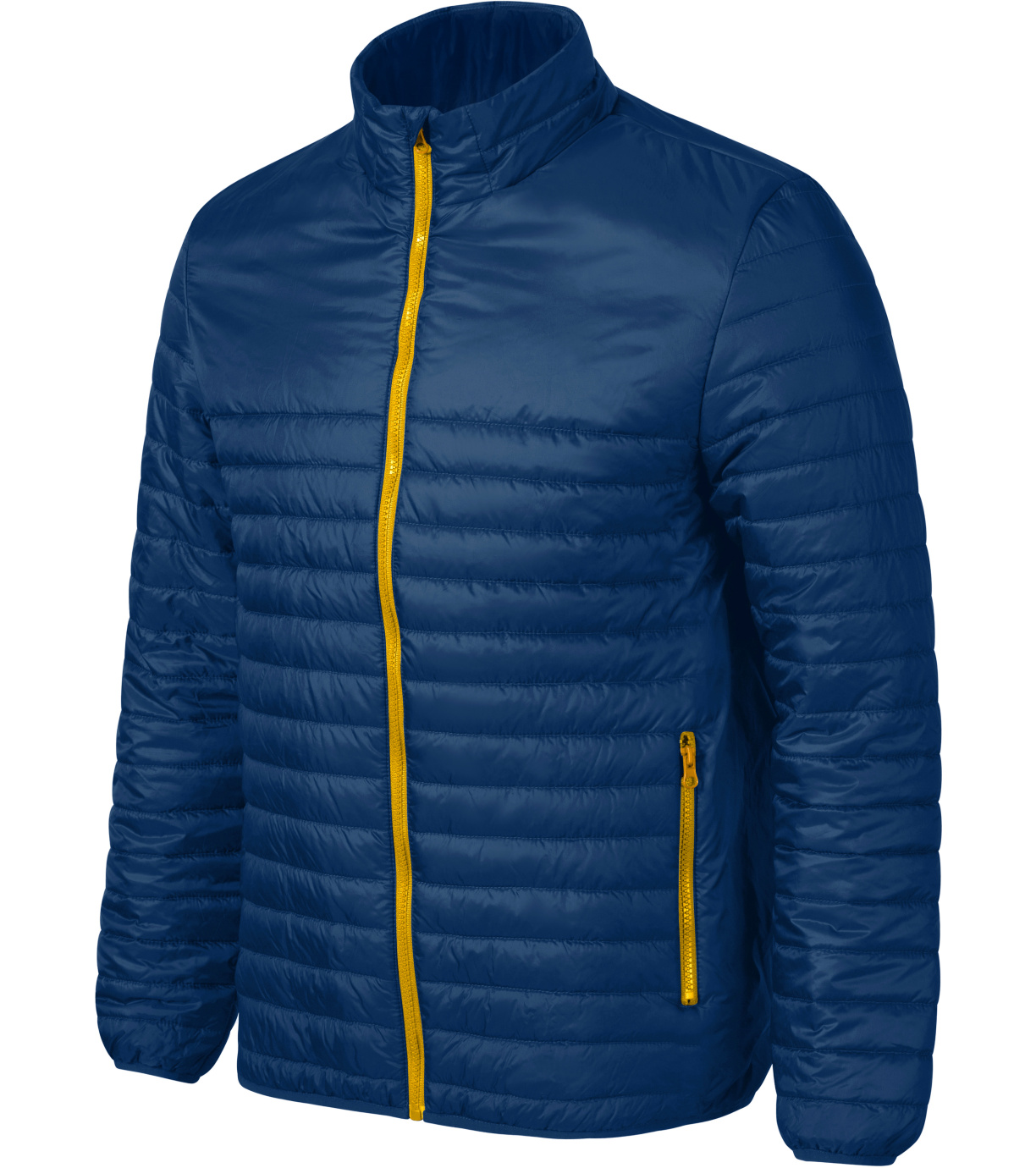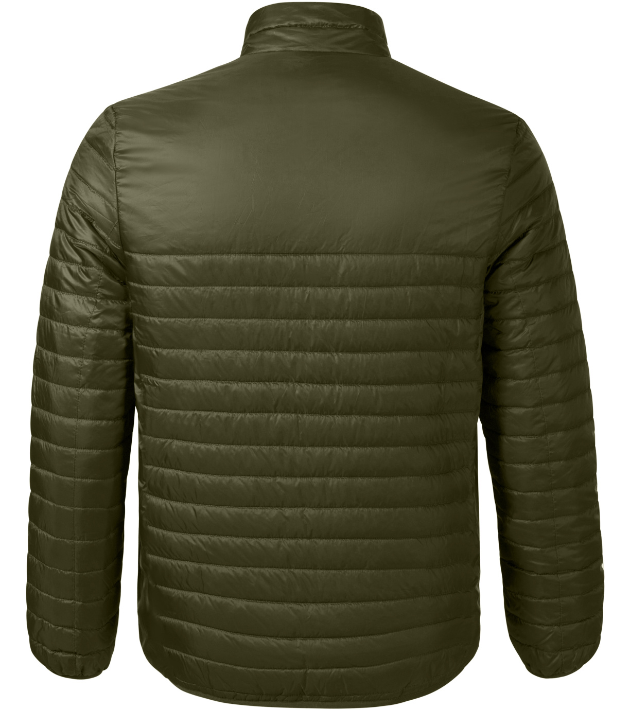 Męska pikowana kurtka, którą można spakować do wewnętrznej kieszeni, lekka i ciepła, z przeszyciami, prosty krój z panelami bocznymi, zamek błyskawiczny na całej długości z osłoną podbródka, kieszenie zapinane na zamek błyskawiczny, wewnętrzna kieszeń zapinana na rzep, otwór na logo w bocznym szwie podszewki, elastyczny ściągacz u dołu.