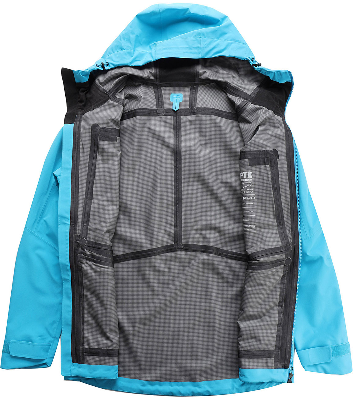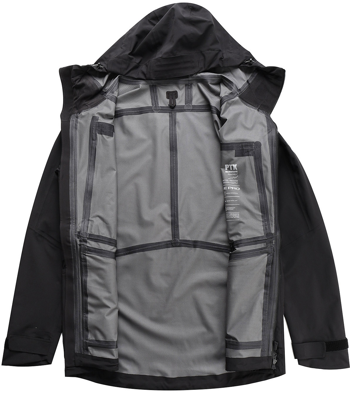 wykończenie materiału membrana PTX, słup wody 15 000 mm, paroprzepuszczalność 15 000 g/m2 /24h, Ret < 6, DWR