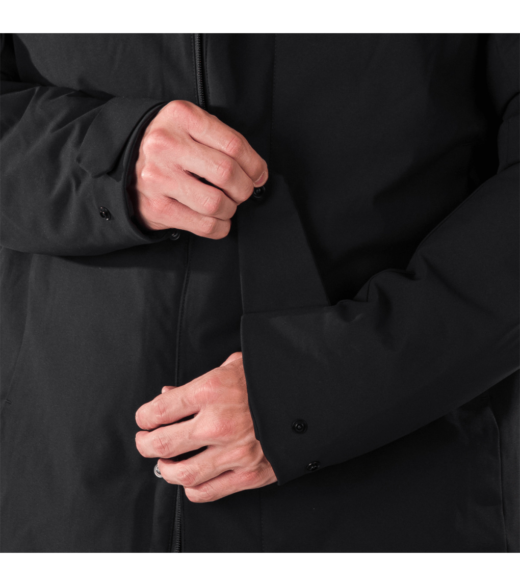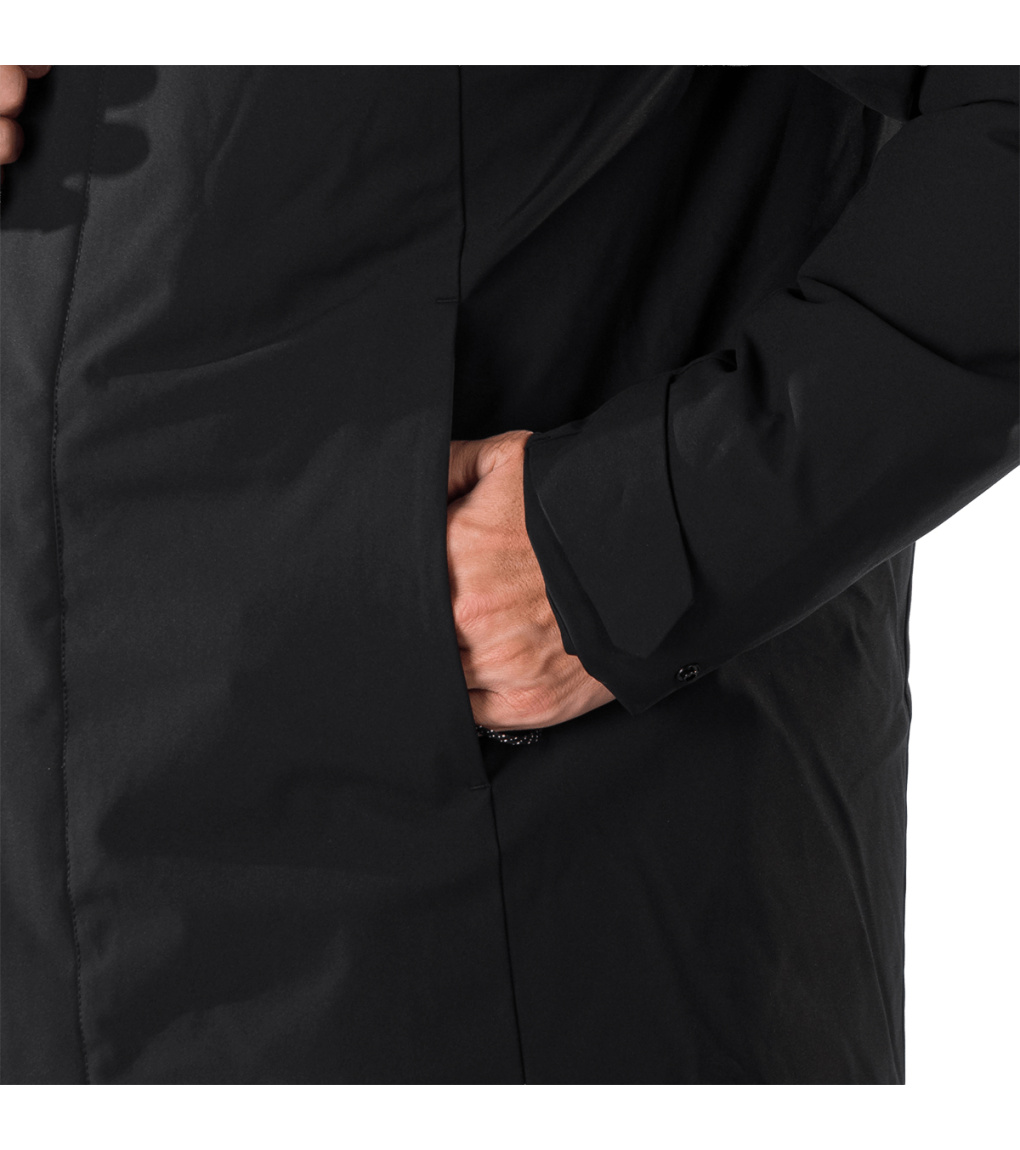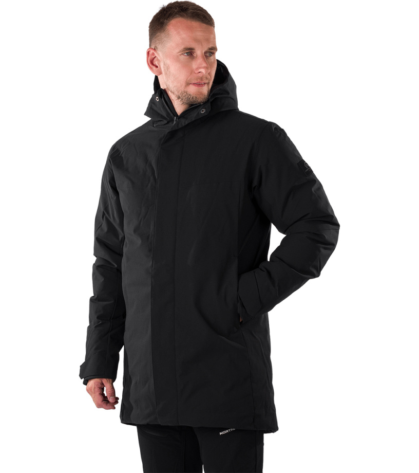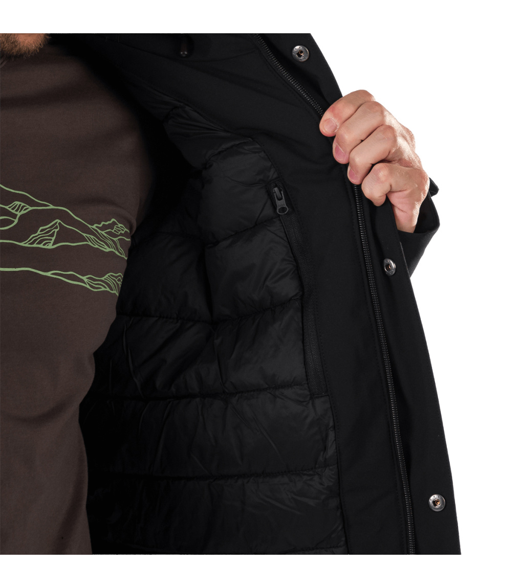 Męski płaszcz miejski JAKUB to ocieplana parka, idealna na wietrzną i chłodną pogodę z możliwymi opadami. Materiał wierzchni jest wodoodporny, wiatroszczelny i przyjemnie ciepły dzięki ociepleniu z mikrofibry. Płaszcz ma klejone krytyczne szwy dla lepszej odporności na wilgoć oraz dwie przednie kieszenie zapinane na zamek i kieszeń na piersi. Rękawy są wstępnie uformowane, a ich obwód można regulować za pomocą rzepa. Zintegrowany kaptur 3D zapewni ochronę nawet podczas deszczu. Wykończenie WR bez PFC zwiększa wartość ekologiczną produktu.