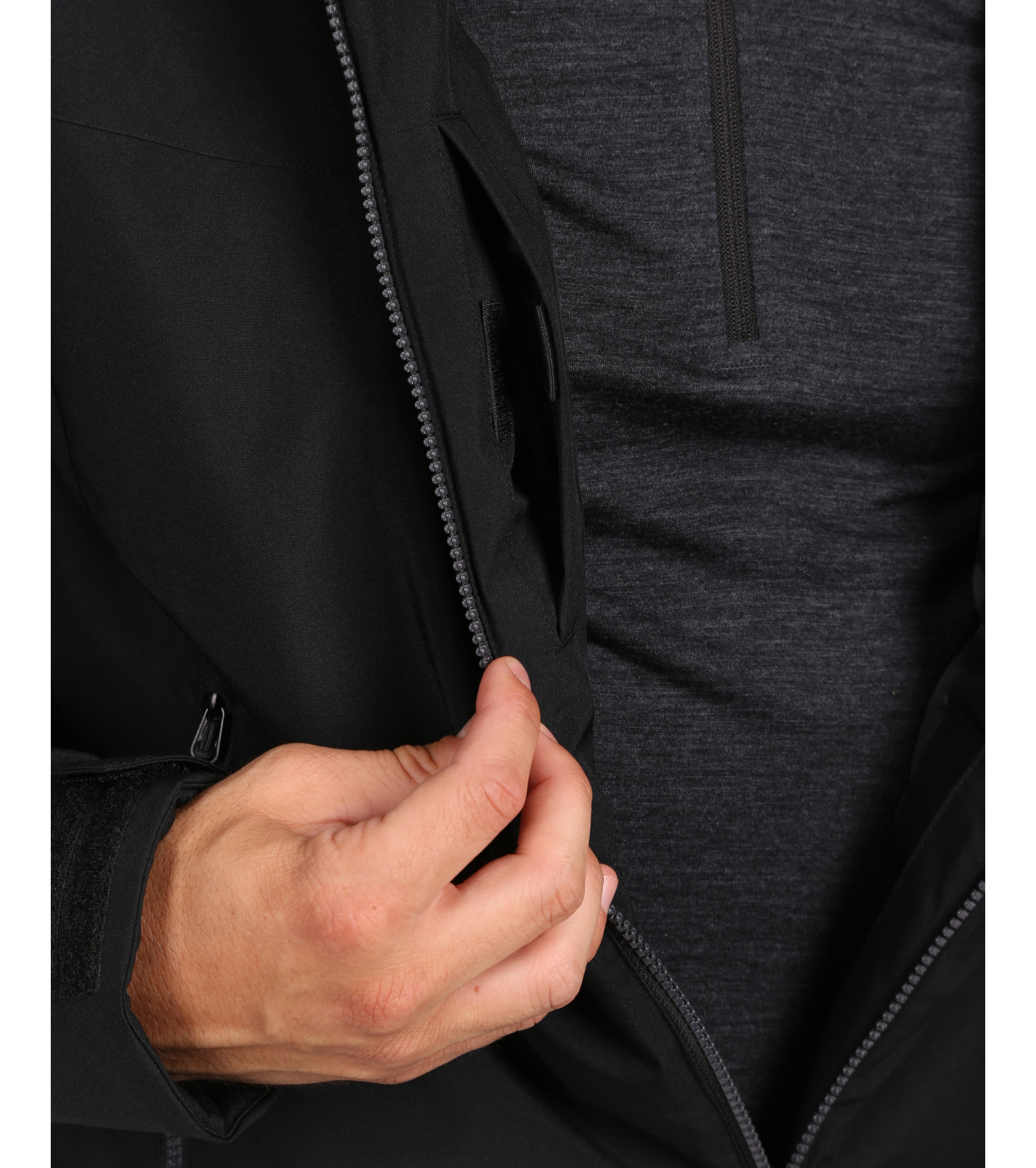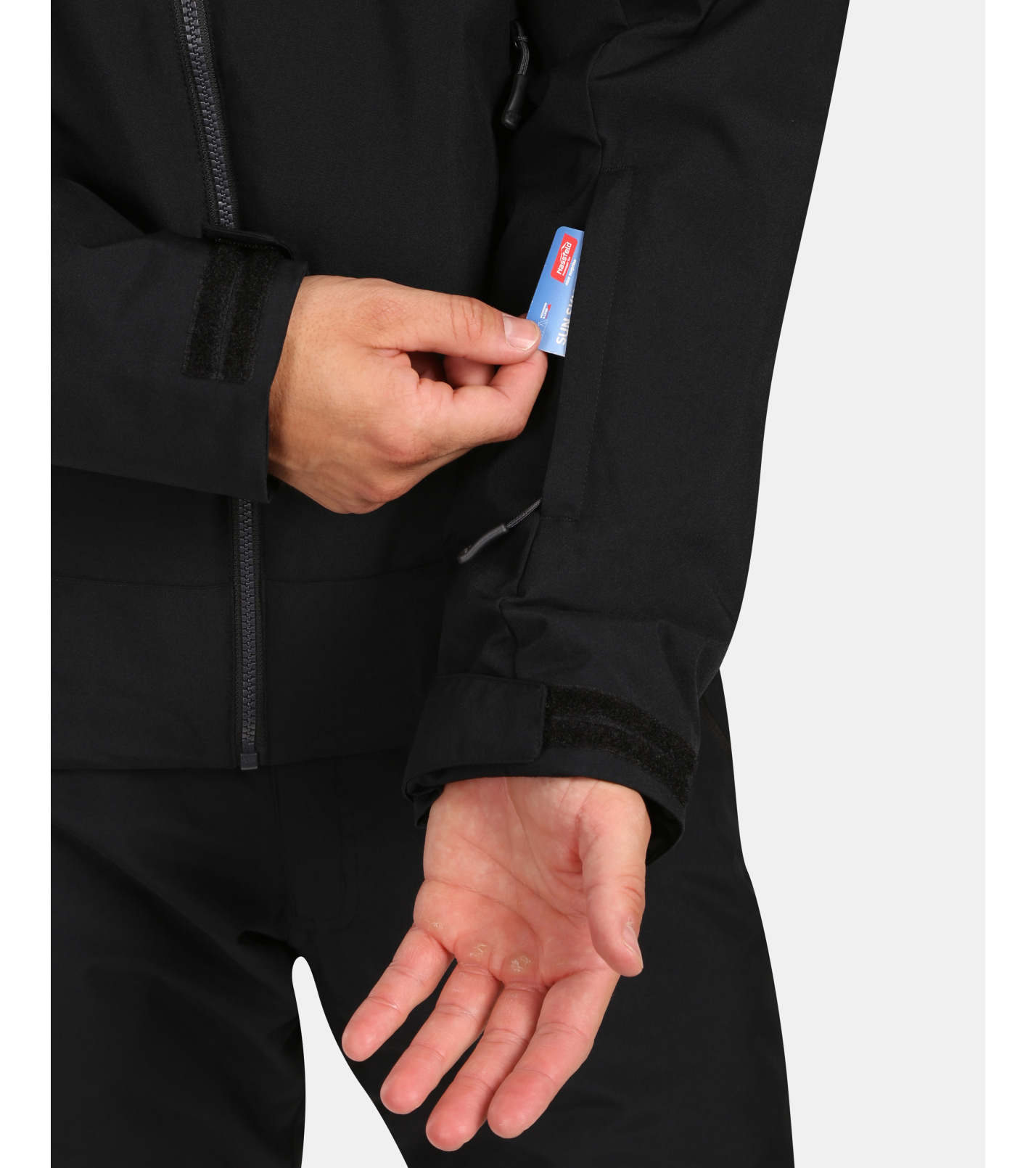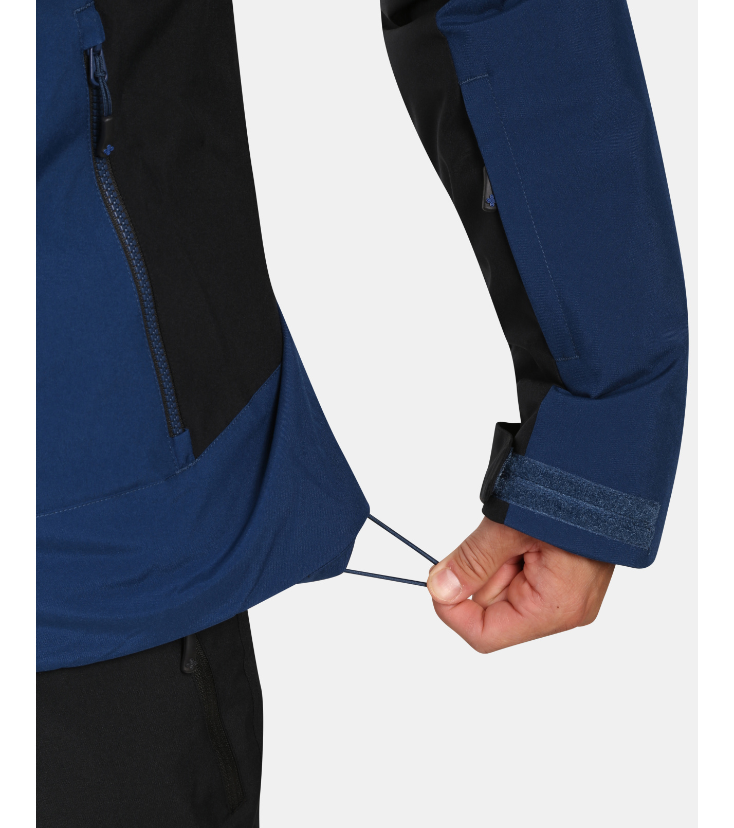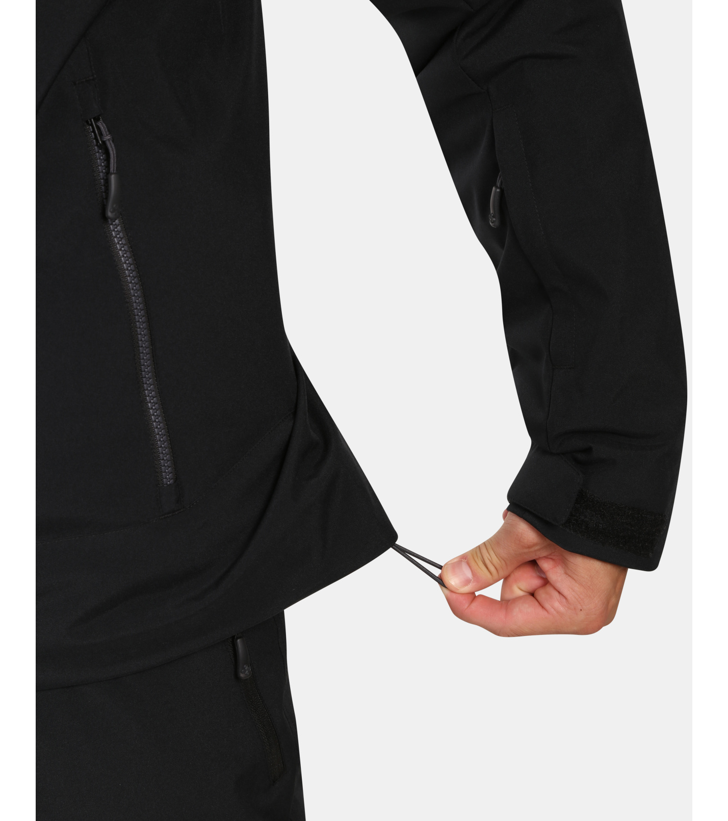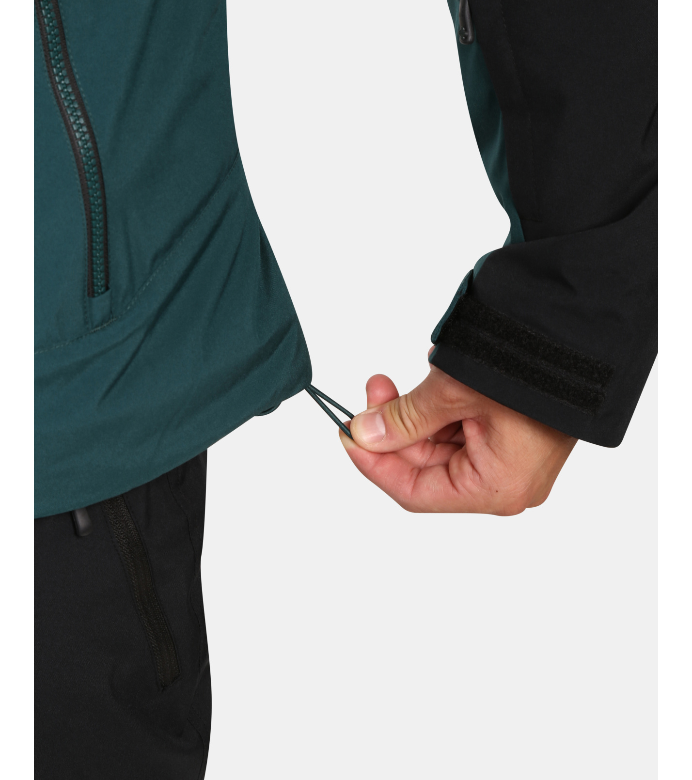 Praktyczne funkcje obejmują trzy kieszenie zewnętrzne, kieszeń na karnet narciarski i wewnętrzną kieszeń na cenne przedmioty, a także kołnierz śnieżny wewnątrz kurtki. Dół kurtki można łatwo wyregulować gumką, a rękawy za pomocą rzepów. W pełni regulowany kaptur można dopasować do własnych potrzeb dzięki gumce.