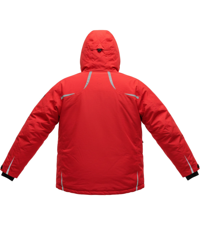 Charakterystycznym elementem są elementy odblaskowe, które zwiększają widoczność i bezpieczeństwo w warunkach słabego oświetlenia. Kurtka ma wygodny, niekrępujący ruchów krój i nadaje się zarówno na stok narciarski, jak i do noszenia na co dzień zimą. Dzięki wyrazistemu czerwonemu kolorowi prezentuje się sportowo i energicznie. Wyposażona jest w pas śnieżny.