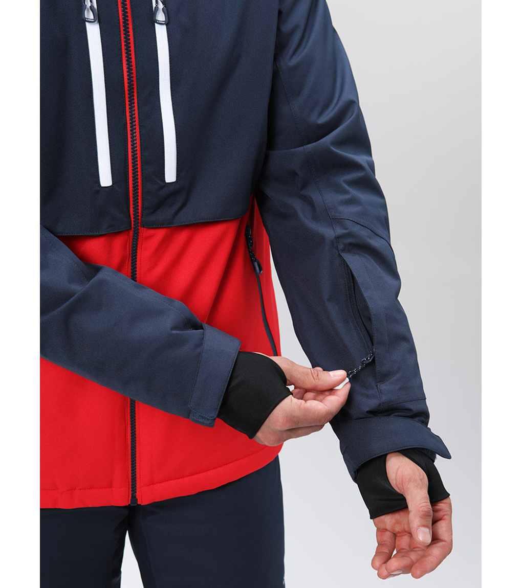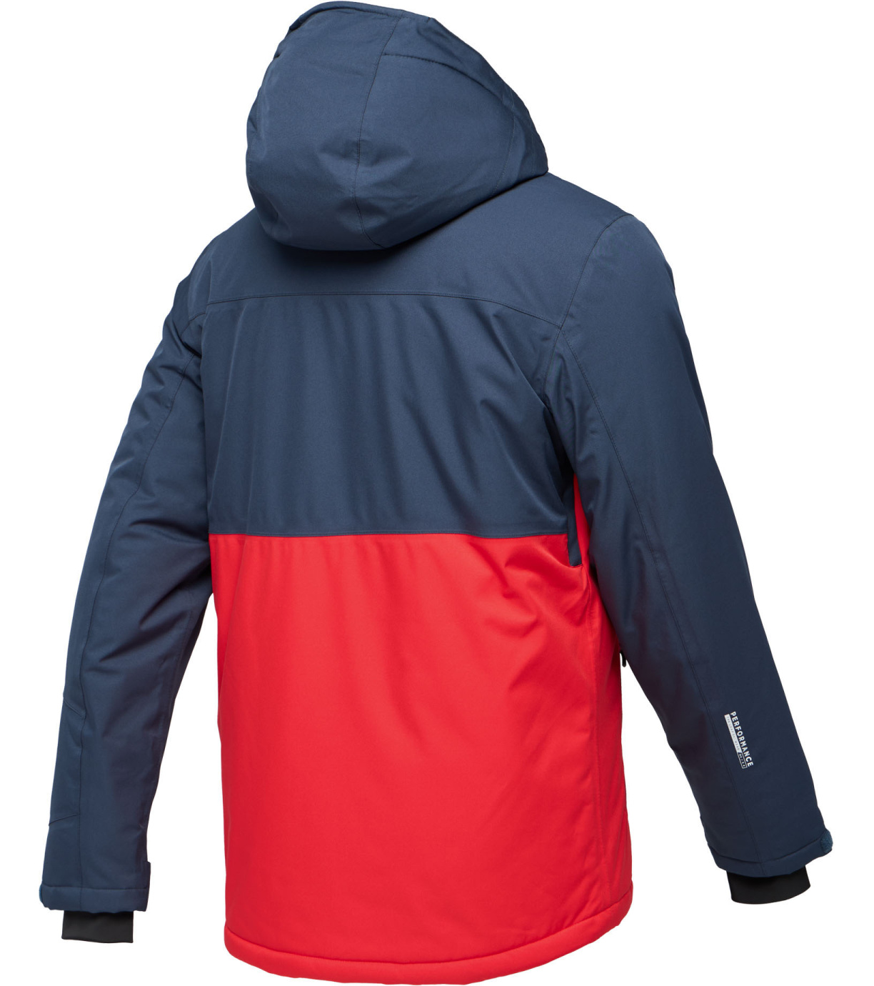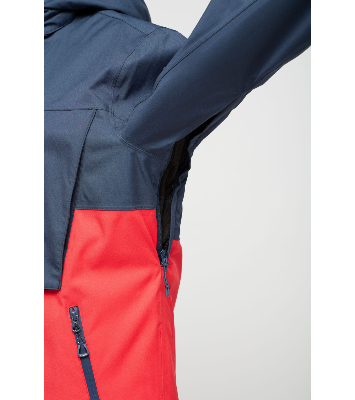 Gotowa na śnieg, wiatr i akcję – męska kurtka narciarska z całodziennym wyposażeniem. Ta męska kurtka narciarska została zaprojektowana z myślą o trudnych warunkach górskich i zapewnieniu maksymalnego komfortu przez cały dzień na stoku. Membrana AQUA PRO o wodoodporności 15 000 mm, klejone szwy i wytrzymały materiał zewnętrzny STORMEX niezawodnie ochronią Cię przed wilgocią i wiatrem. Oddychalność 5000 g/m²/24 h oraz zamki wentylacyjne zapewnią idealny mikroklimat wewnątrz kurtki podczas aktywności fizycznej. Izolacja z włókien POLYTHERM zapewnia ciepło. Kurtka ma odpinany, regulowany kaptur, pas śnieżny oraz ściągacz u dołu kurtki, zapewniający lepszą ochronę przed zimnem. Rękawy z regulowanymi rzepami uzupełnione są wewnętrznym elastycznym mankietem z otworem na kciuk, który zapobiega przedostawaniu się śniegu nawet podczas aktywnego ruchu. Pięć kieszeni zewnętrznych i dwie wewnętrzne pozwolą Ci bezpiecznie przechowywać wszystko, czego potrzebujesz – od karnetu narciarskiego po okulary przeciwsłoneczne. Wodoodporny, wszyty zamek błyskawiczny jest niezawodny, a jednocześnie sportowy i nowoczesny. Klasyczny krój dobrze dopasowuje się do większości sylwetek i zapewnia swobodę ruchów. Doskonały towarzysz na stokach i w górach.