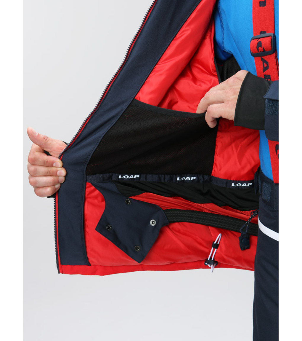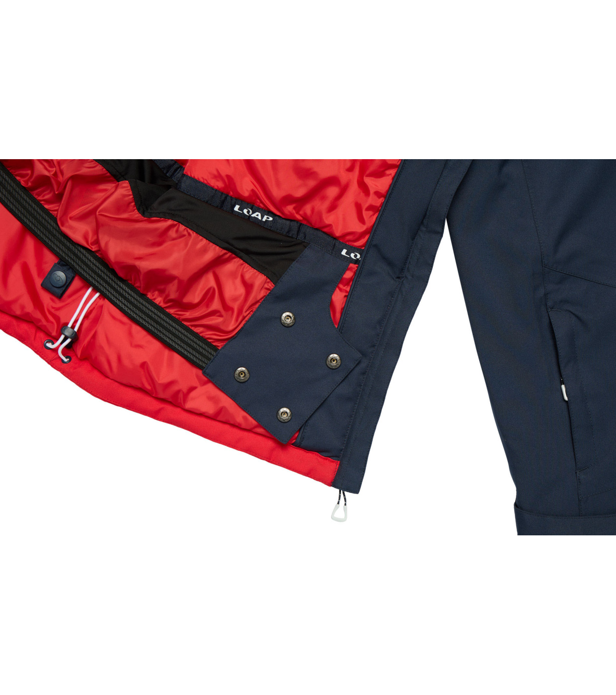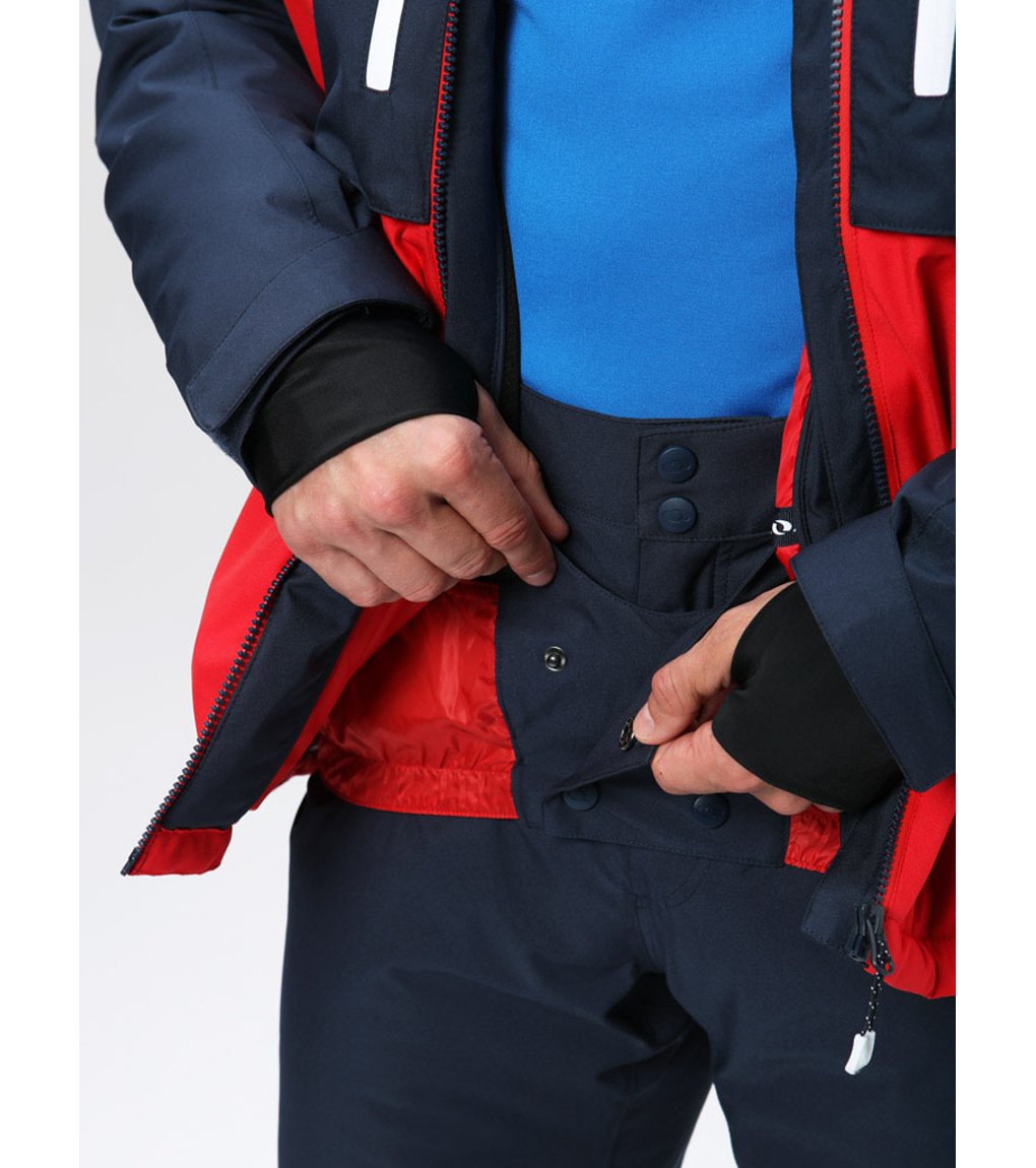 Na trwało wszyty pas ochronny przeciwśnieżny, który zapobiega przedostawaniu się śniegu pod ubranie. Na dole wszyta jest elastyczna guma antypoślizgowa.