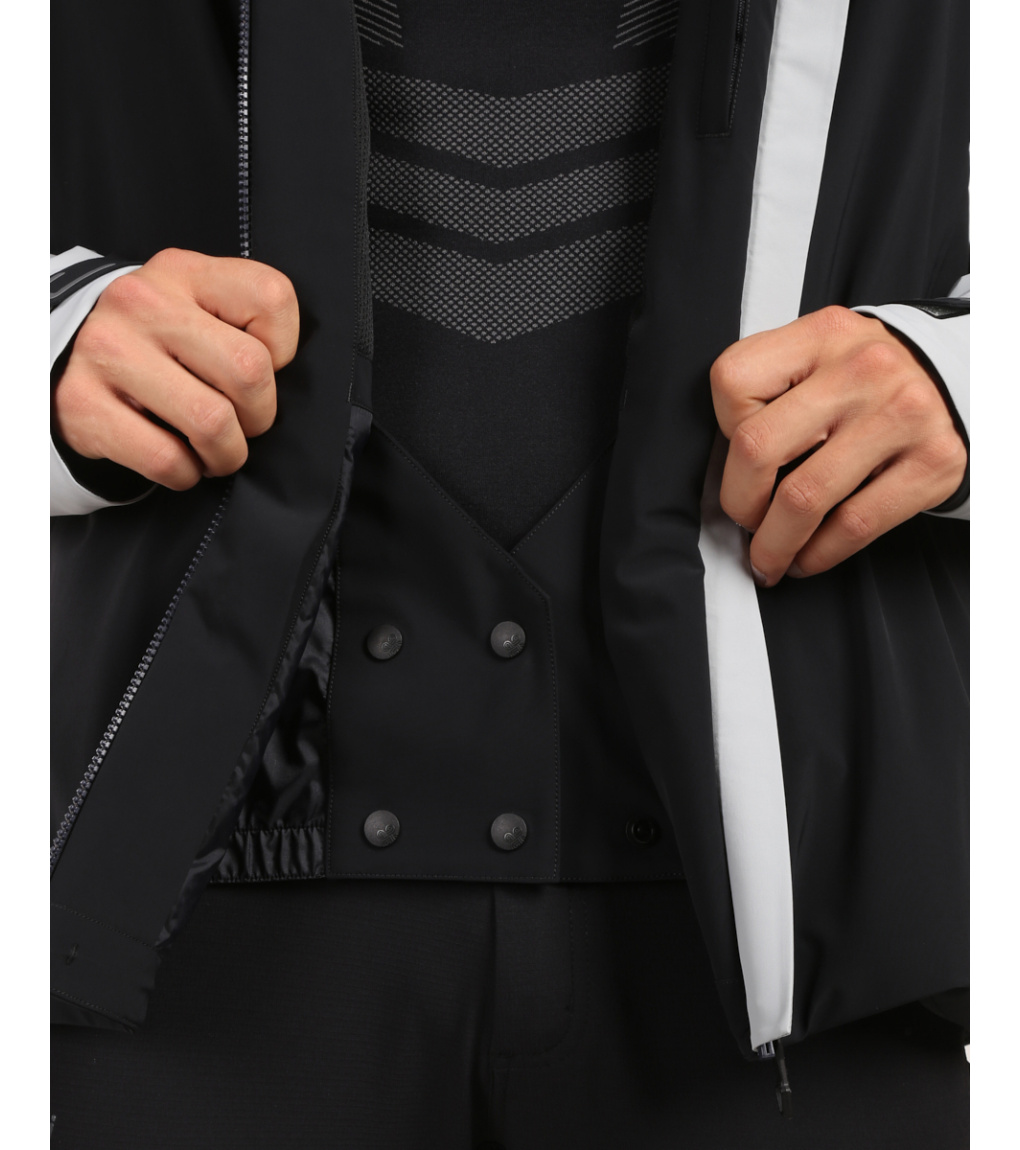 Męska kurtka narciarska Kilpi HYDER-M reprezentuje to, co najlepsze w ofercie męskich kurtek Kilpi. Jej podstawą jest markowy materiał membranowy DERMIZAX, wysoce wodoodporny i oddychający. W połączeniu z klejonymi szwami gwarantuje suchość i komfort w każdych warunkach. Połączenie wewnętrznej elastycznej podszewki, stref strukturalnych i syntetycznego wypełnienia PRIMALOFT pomaga utrzymać ciepło. Główne kieszenie, kieszenie na piersi oraz kieszeń na rękawie na karnet narciarski z wodoodpornymi zamkami YKK zapewniają długą żywotność i funkcjonalność. Inne zalety kurtki to zamki wentylacyjne pod pachami, obszerny, odpinany kaptur z trzypunktową regulacją, wzmocnionym daszkiem i kołnierzem śnieżnym. Obszycia rękawów można regulować za pomocą rzepów. Wewnętrzna kieszeń z siatki zawiera również ściereczkę do czyszczenia gogli. Kurtka ma zintegrowany odbłyśnik RECCO, który zwiększa szanse na znalezienie Cię w razie wypadku. Dopracowane kontrastowe detale z laserowo wycinanymi i tłoczonymi elementami sprawiają, że kurtka Kilpi HYDER-M przyciąga wzrok. Polecamy połączyć je ze spodniami Kilpi LEGEND-M, które znajdziesz w naszej ofercie męskich spodni narciarskich.