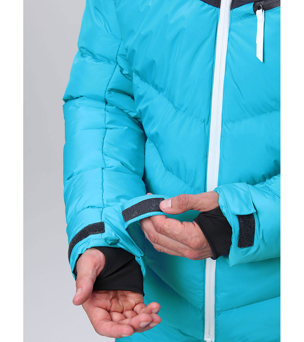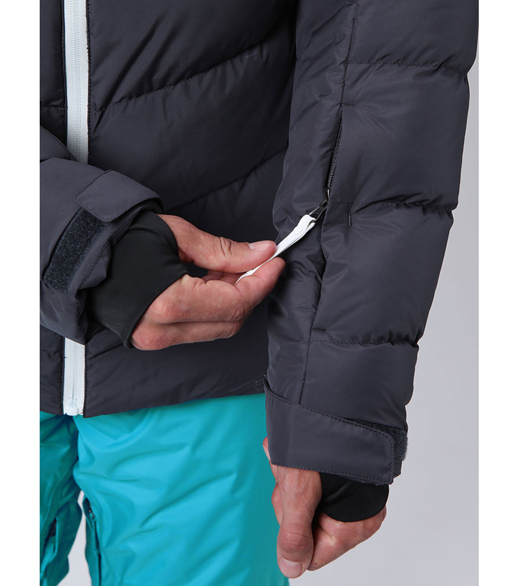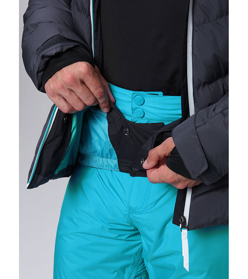 Na trwało wszyty pas ochronny przeciwśnieżny, który zapobiega przedostawaniu się śniegu pod ubranie. Na dole wszyta jest elastyczna guma antypoślizgowa.