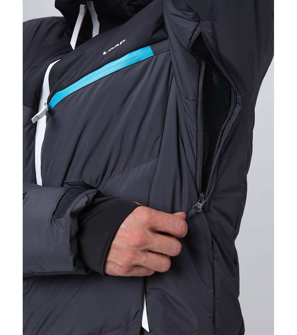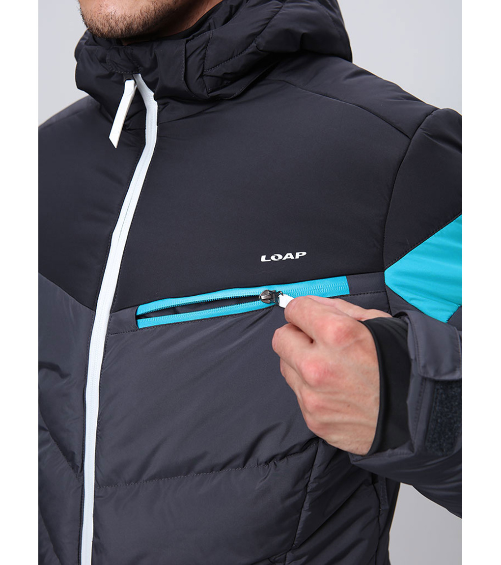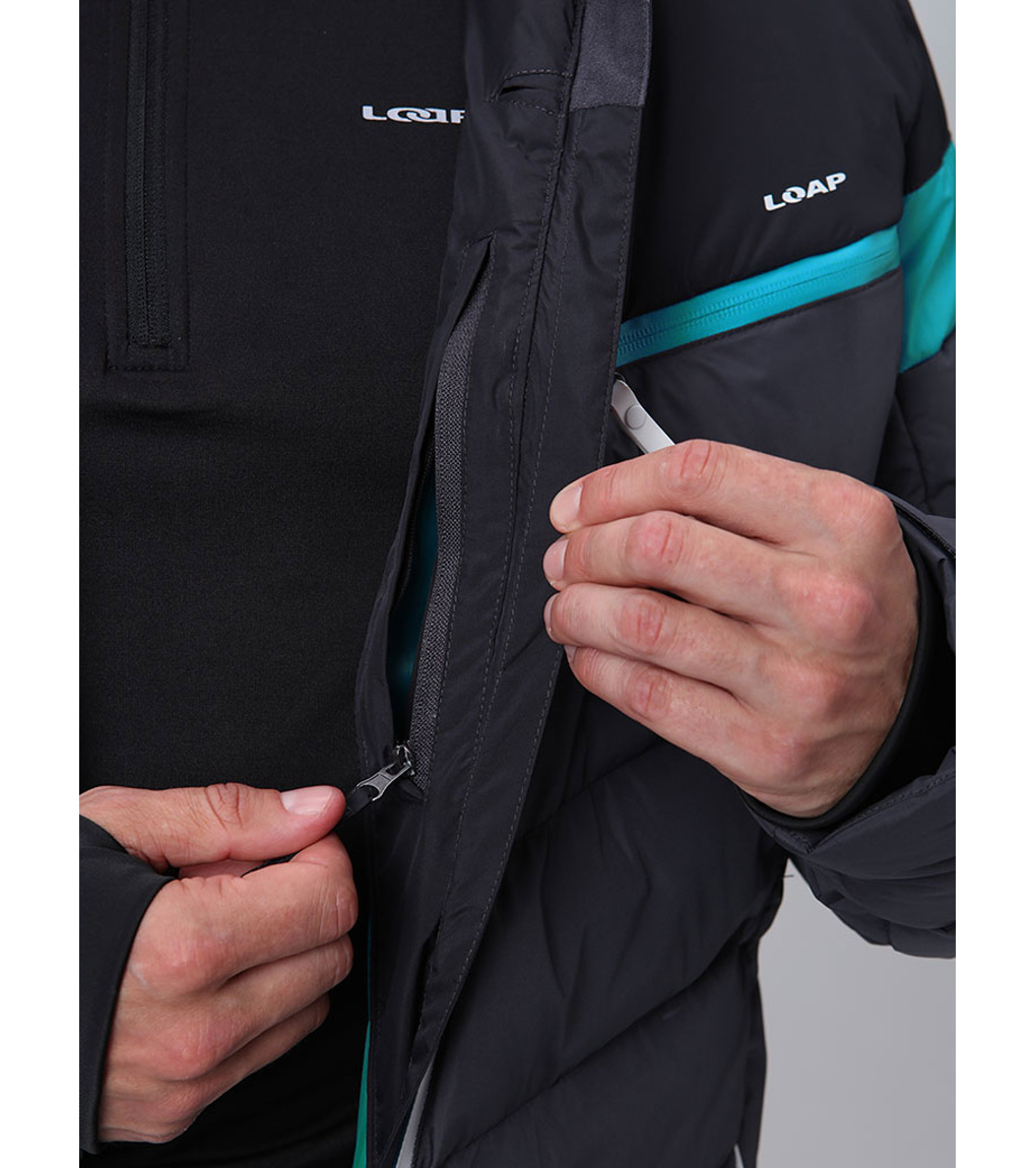 Męska kurtka narciarska Loap ORIDIOR to niezawodny partner na długie dni na stoku. Kurtka wykonana z wytrzymałego materiału STORMEX, gwarantującego ochronę przed silnym wiatrem, w połączeniu z membraną AQUA PRO o słupie wody 5000 mm i oddychalności 5000 g/m2/24h zapewni suchość nawet podczas lekkiego deszczu lub śniegu. Dodatkową ochronę przed wnikaniem wilgoci zapewniają podklejone w newralgicznych miejscach szwy oraz wodoodporny zamek błyskawiczny. W niższych temperaturach docenisz izolację z włókien POLYTHERM, a w słoneczne dni wentylację zapinaną na zamek i odpinany kaptur. Pas przeciwśnieżny i elastyczne rękawy z otworem na kciuk sprawiają, że śnieg nie dostanie się tam, gdzie nie powinien. W sumie sześć kieszeni pomieści wszystko, od karnetu po baton energetyczny.