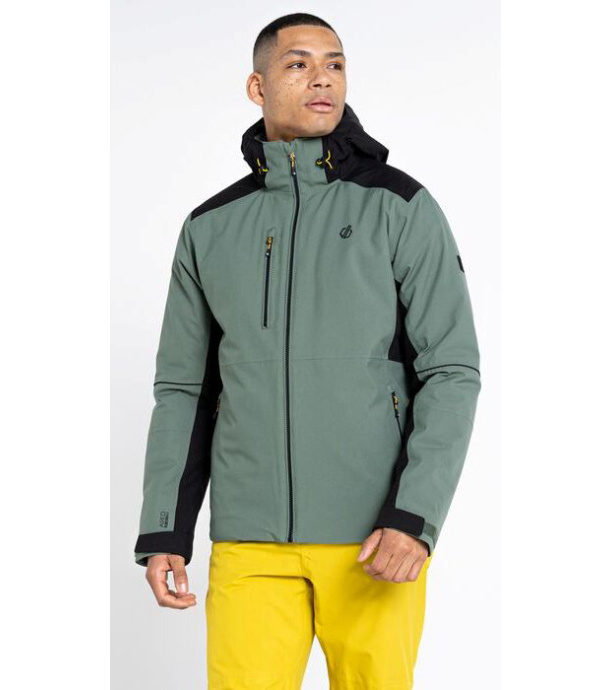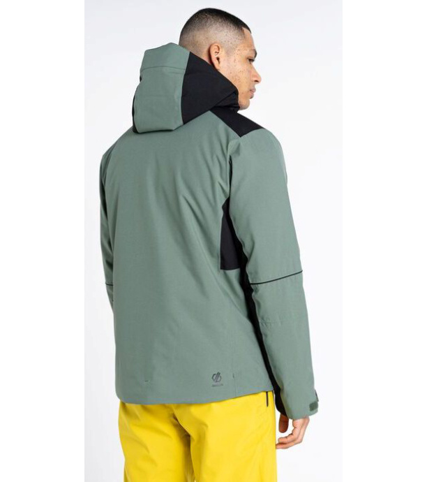 Męska kurtka zimowa Dare2b Remit jest wykonana z hydrofobowego, oddychającego materiału ARED Strech 20000. Kurtka jest w całości zapinana na zamek błyskawiczny z wysokim kołnierzem śnieżnym, zamek błyskawiczny ma osłonę podbródka. Kurtka oferuje również pas śnieżny z silikonowym wykończeniem, regulację rękawów na rzep, regulację dolnego brzegu na zamek błyskawiczny. Dwie główne kieszenie zapinane na zamek błyskawiczny, kieszeń na karnet narciarski na lewym przedramieniu, dwie wewnętrzne kieszenie na okulary. Z tyłu znajduje się podszewka poliestrowa z antypoślizgowym panelem tylnym. Klejone szwy zapobiegają przedostawaniu się wilgoci z zewnątrz do materiału. Kurtka oferuje izolację poliestrową o małej objętości, która ma doskonałe właściwości termiczne i jest łatwa w utrzymaniu.