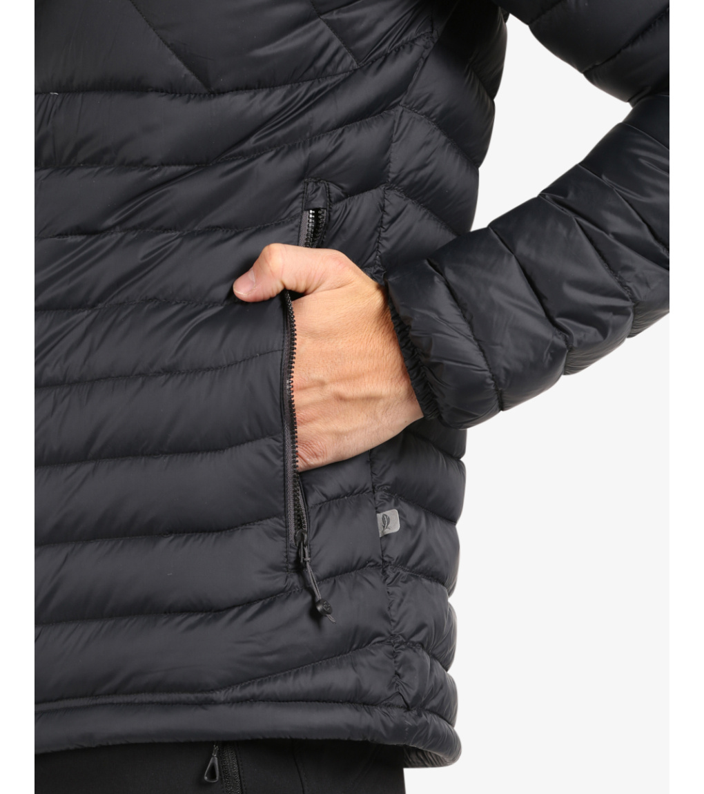 Kilpi PYRAMIDEN-M to męska kurtka puchowa wypełniona gęsim pierzem, którą pokochasz zarówno w czasie wolnym, jak i podczas aktywności outdoorowych i uprawiania sportu. Materiał zewnętrzny pokryto powłoką hydrofobową SIBERIUM DWR. Kurtki puchowe nadają się jako warstwa zewnętrzna w zimną i mroźną pogodę lub jako warstwa izolacyjna pod kurtkami typu hardshell. Łatwy do spakowania w dołączonym worku kompresyjnym. Całkowita waga kurtki w rozmiarze M wynosi 400g. Dwie praktyczne kieszenie zapinane na suwak oraz kaptur ze ściągaczem w postaci elastycznego sznurka, podobnie jak dolny brzeg kurtki. Kurtka Kilpi PYRAMIDEN-M zapewnia wysoki komfort termiczny. Można je znaleźć w ofercie w różnych kolorach. Możesz mieć ją zawsze przy sobie w worku kompresyjnym.