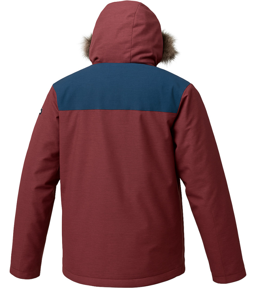 Ciepła męska kurtka zimowa Elbrus z dużą ilością kieszeni, kaptur z futerkiem wykonany z materiału wodoodpornego.