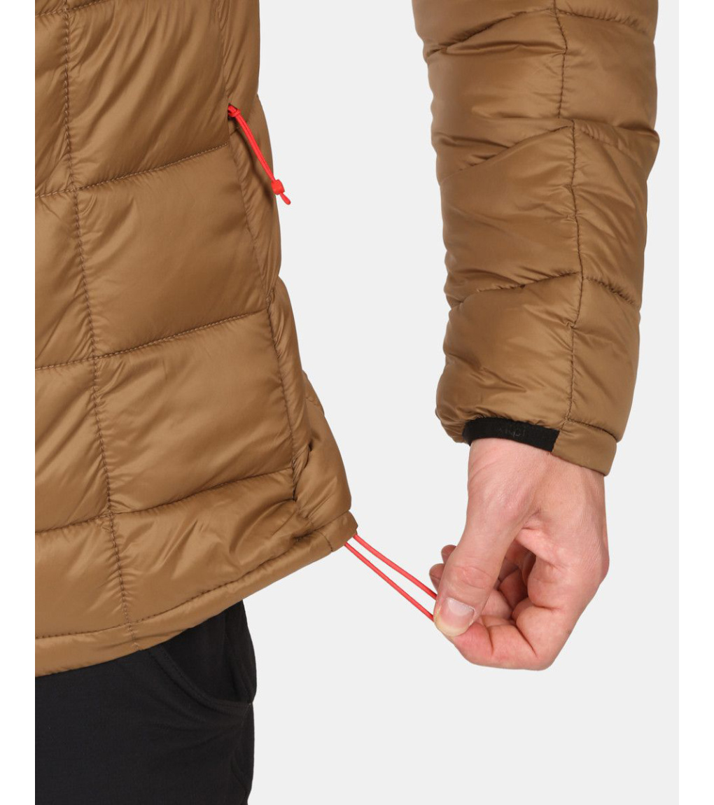 Jeśli szukasz męskiej pikowanej kurtki na zimę, która jest jednocześnie niezwykle lekka, wybierz Kilpi REBEKI-M! Ogrzeje Cię i pomoże utrzymać ciepło dzięki wypełnieniu z włókien syntetycznych EMPORIUM LOFT. Warstwa DWR na materiale zewnętrznym gwarantuje wodoodporność kurtki. Docenisz dwie kieszenie zapinane na zamek, duży kaptur z gumką oraz dół kurtki, który można w razie potrzeby ściągnąć gumką dla większego komfortu. Całkowita waga kurtki to zaledwie 360 g w rozmiarze M. Stylowa kolorystyka i efektowne przeszycia sprawdzą się zarówno w codziennym noszeniu w mieście, jak i podczas uprawiania sportu i aktywności na świeżym powietrzu. Na pierwszy rzut oka nie poczujesz, że to nie piórko. Kilpi REBEKI-M oferujemy w kilku kolorach.