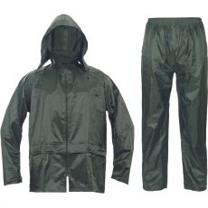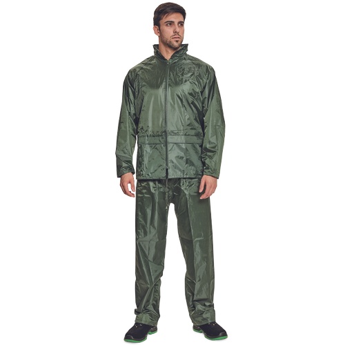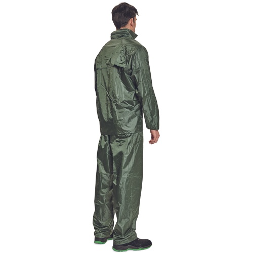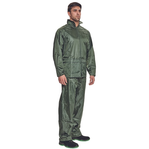 Opis: • dwuczęściowy wodoodporny komplet z kapturem – przeciwdeszczowy płaszcz ¾ z kapturem chowanym w kołnierzu oraz spodnie z elastyczną gumą w pasie • z przodu 2 szerokie kryte kieszenie • mankiety z możliwością regulacji za pomocą zatrzasków • wentylacja na plecach i pod pachami • w zestawie z woreczkiem