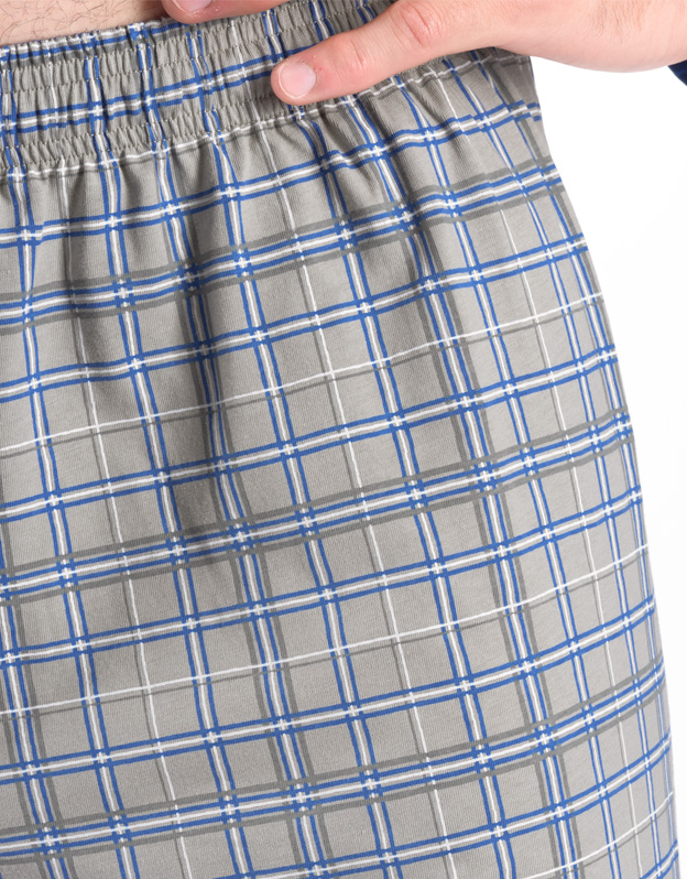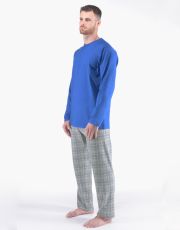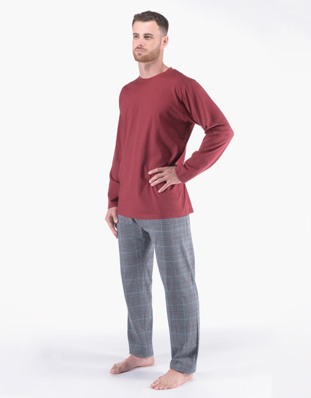Klasyczna, luźna piżama męska wykonana z cienkiej dzianiny zapewni Ci komfort podczas snu. Spodnie mają popularny wzór w kratę, koszulka z długim rękawem jest gładka, bez nadruku.