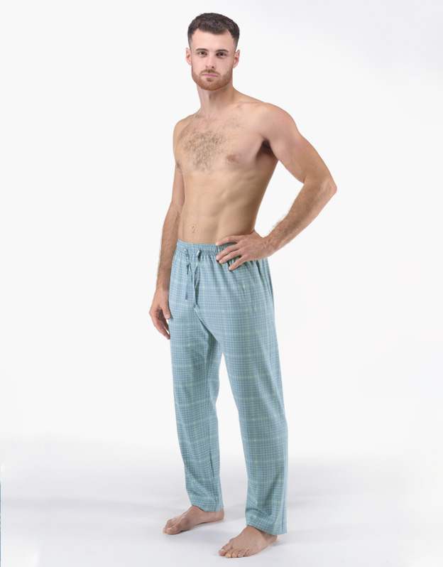 Męskie długie, luźne spodnie zapewniające spokojny sen i komfort. Popularny wzór w kratkę.
