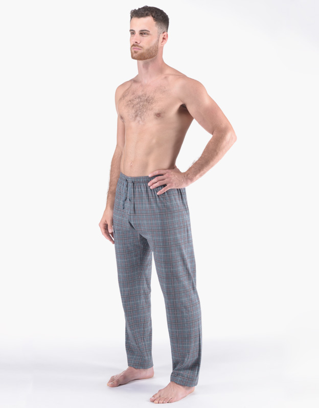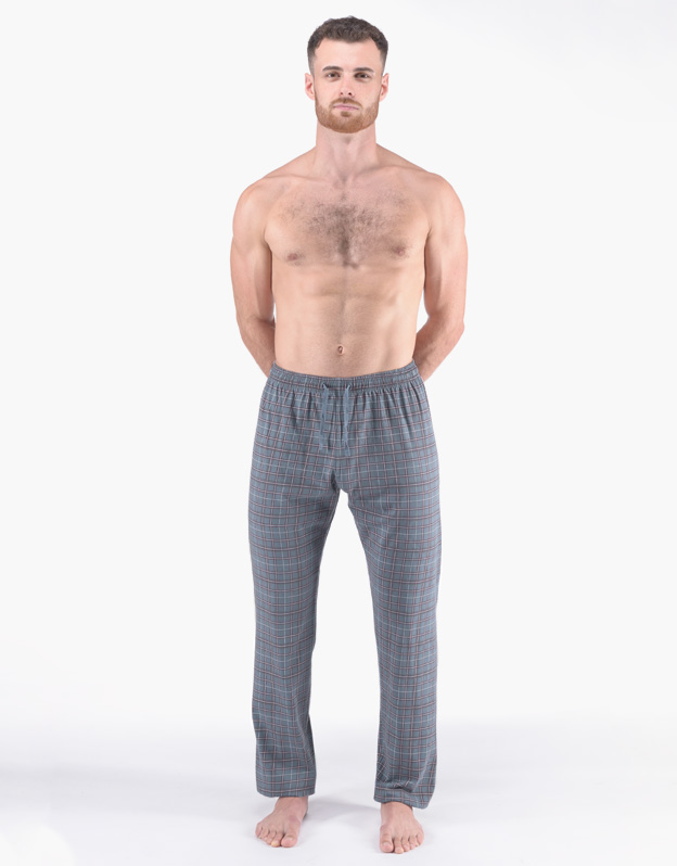 Męskie długie, luźne spodnie zapewniające spokojny sen i komfort. Popularny wzór w kratkę.