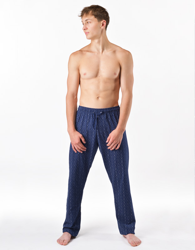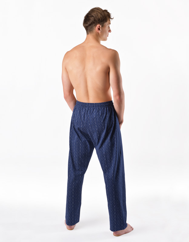 Długie, luźne spodnie męskie zapewnią Ci spokojny sen i domowy komfort. Są ozdobione subtelnym nadrukiem.