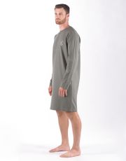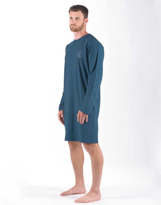 Koszule nocne męskie wykonane z delikatnej dzianiny zapewnią Ci wyjątkowy komfort podczas snu. Jednokolorową koszulę uzupełnia nadruk na piersi.