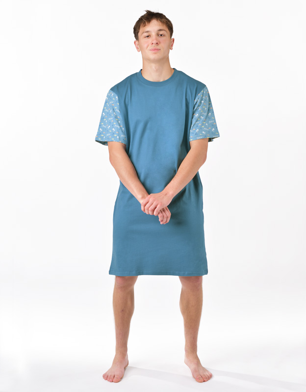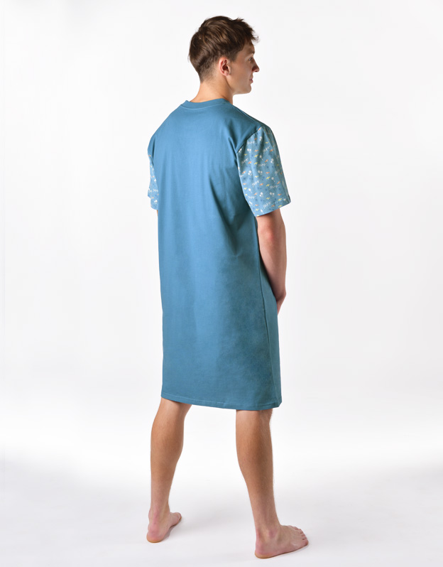 Męska koszula nocna z krótkim rękawem, wykonana z wysokiej jakości dzianiny, zapewni Ci wyjątkowy komfort podczas snu. Rękawy są zadrukowane drobnym wzorem.