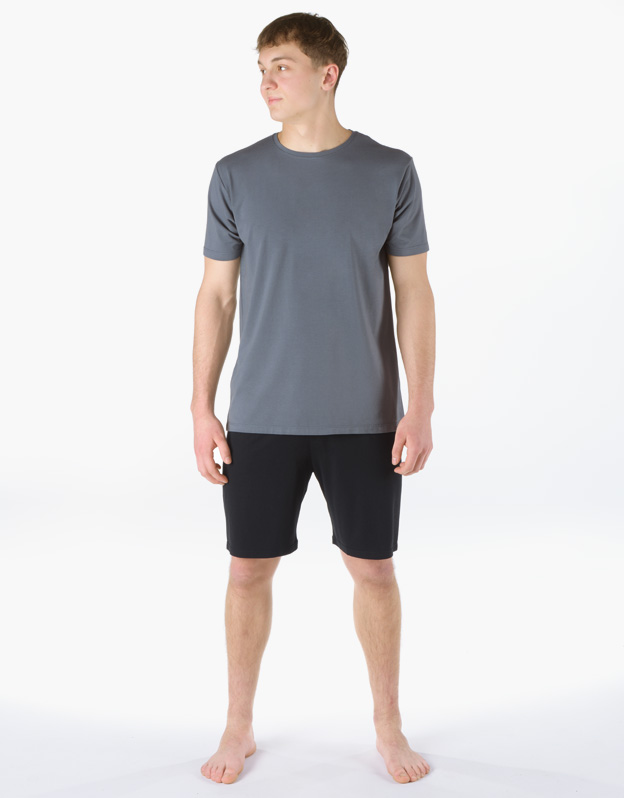 Krótka, luźna piżama męska wykonana z wysokiej jakości dzianiny z dodatkiem wiskozy bambusowej zapewni Ci wyjątkowy komfort podczas snu.