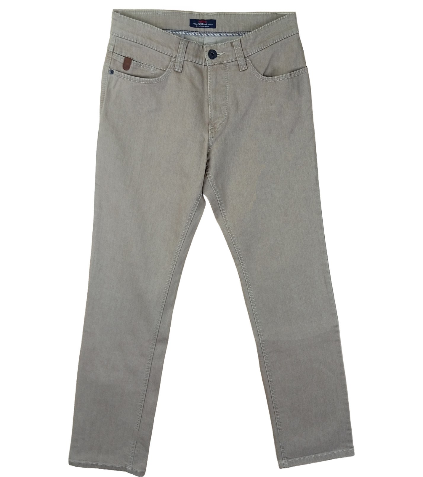 Stylowe męskie spodnie Hattric w szaro-beżowym kolorze, które łączą w sobie swobodną elegancję i maksymalny komfort. Wykonane z miękkiego i wytrzymałego materiału, idealne do noszenia na co dzień. Klasyczny krój z pięcioma kieszeniami i subtelne detale, takie jak skórzana metka na kieszeni, nadają spodniom ponadczasowy wygląd. Łatwo je zestawić z koszulą lub T-shirtem.