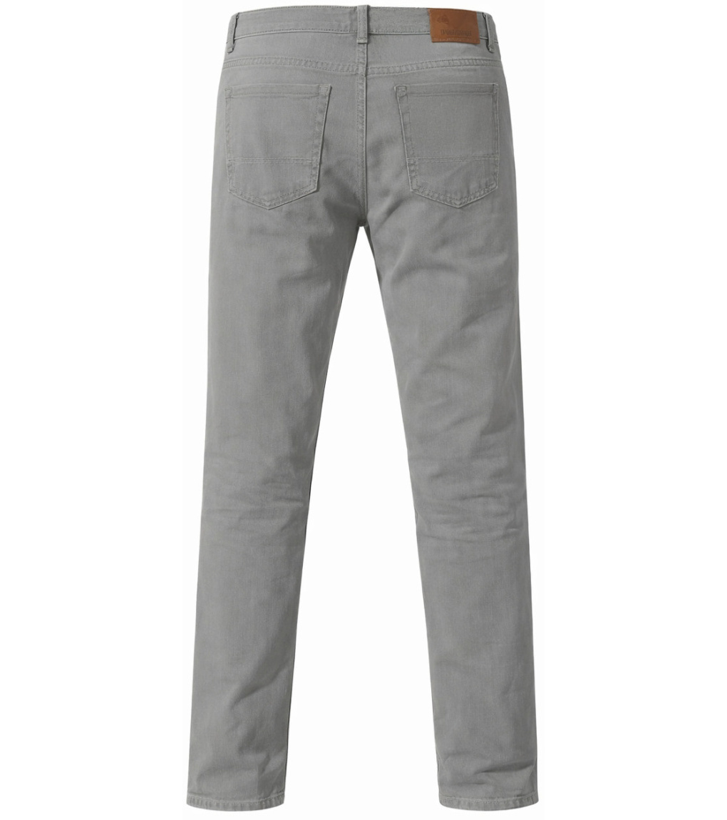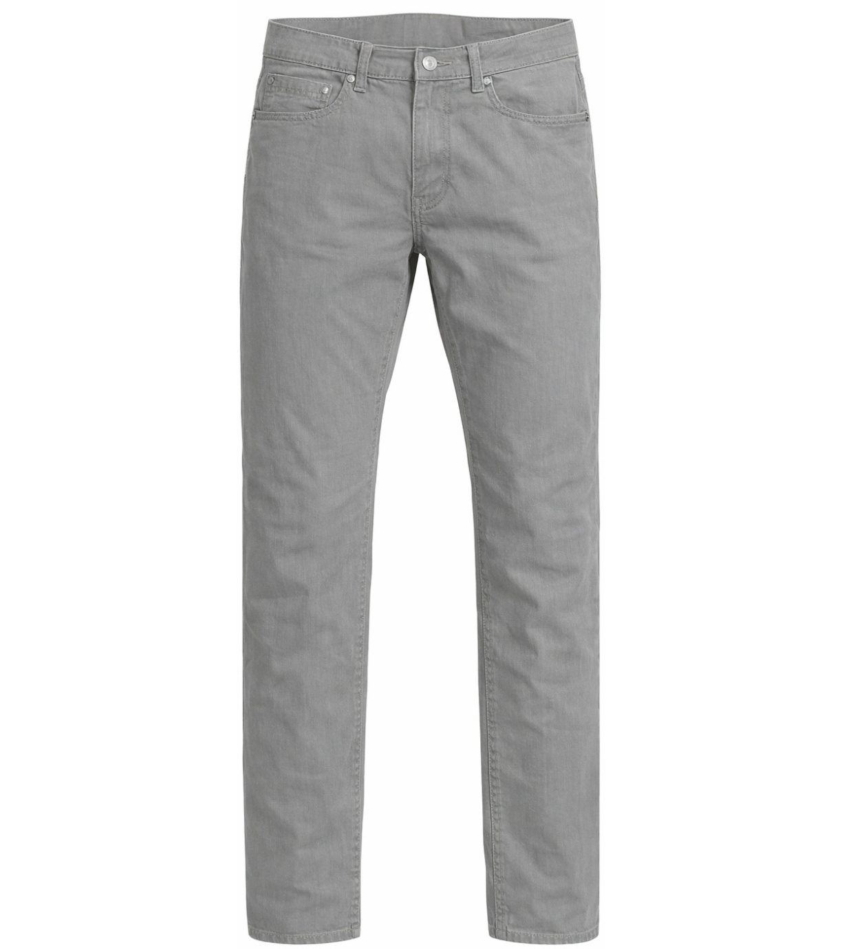Jasnoszare spodnie o klasycznym kroju z prostymi nogawkami, które prezentują się schludnie i nowocześnie. Jednolity kolor bez wyrazistych detali pozwala na łatwe łączenie z różnymi stylizacjami. Wysokiej jakości i wygodny materiał zapewnia wygodę podczas codziennego noszenia. Spodnie zapinane są na guzik i zamek błyskawiczny, mają pięć kieszeni i subtelne przeszycia. To uniwersalny model, idealny do pracy i na co dzień.