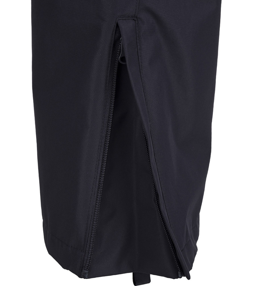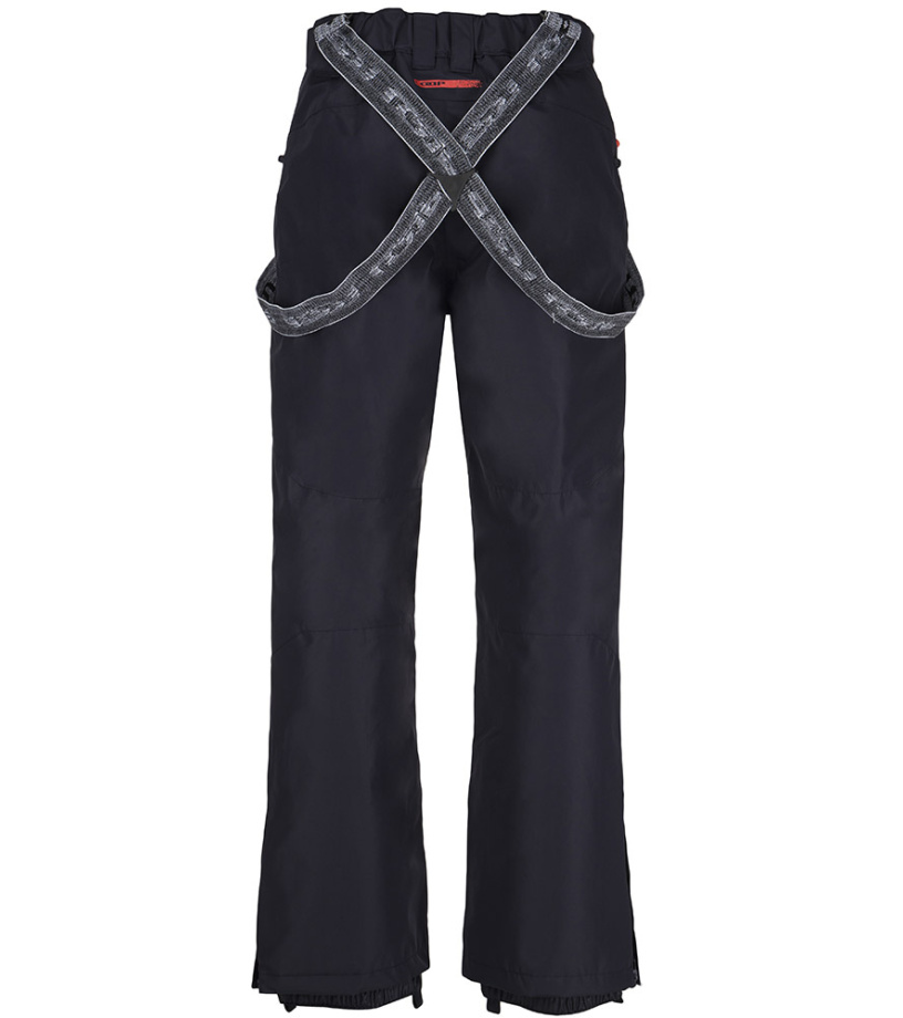 Sznurek do regulacji w pasie i wygodne szerokie szelki chronią plecy przed przewianiem. Praktyczny mankiet przeciwśnieżny na końcu nogawek zapobiega dostawaniu się śniegu do ciała podczas upadku.