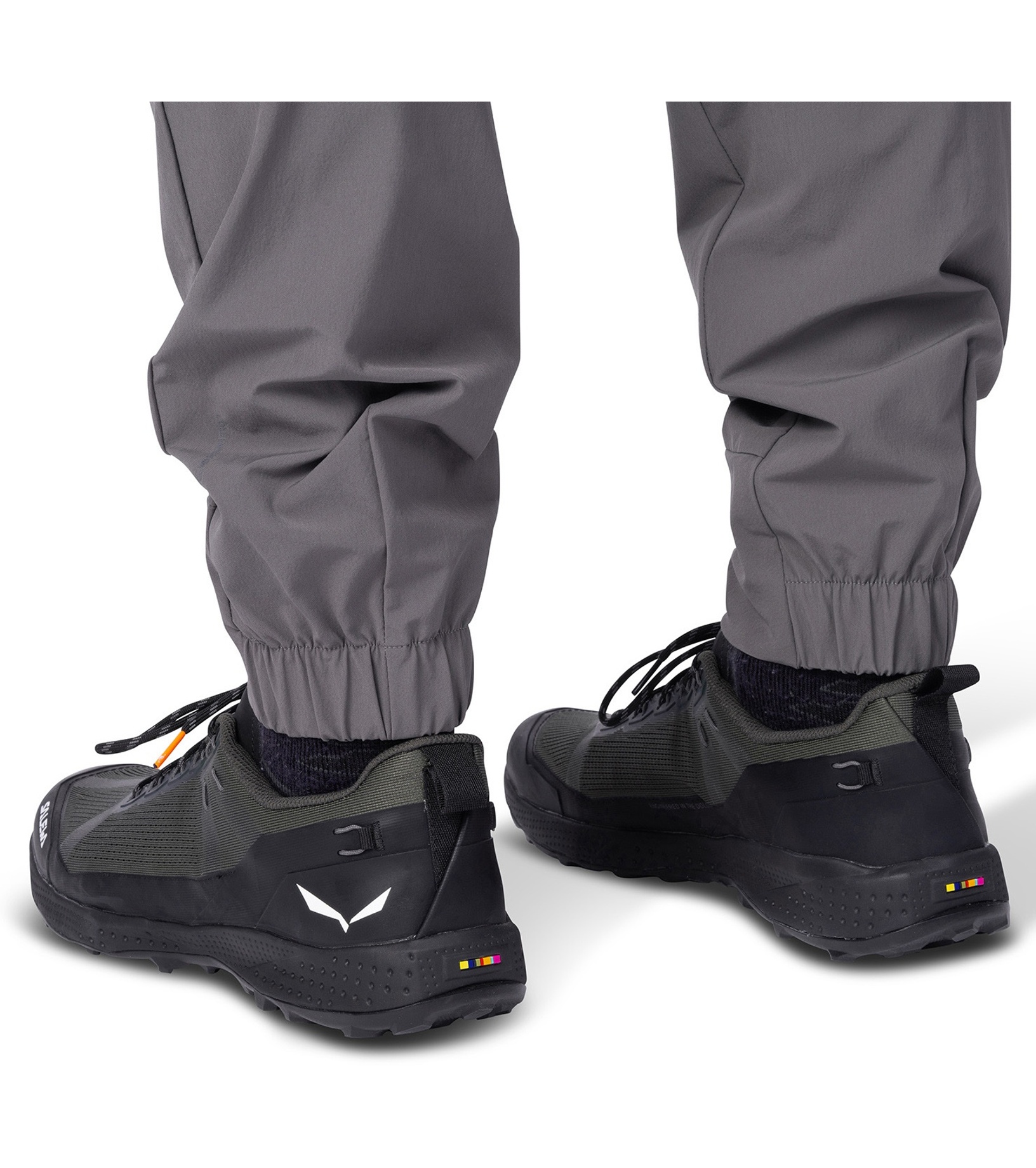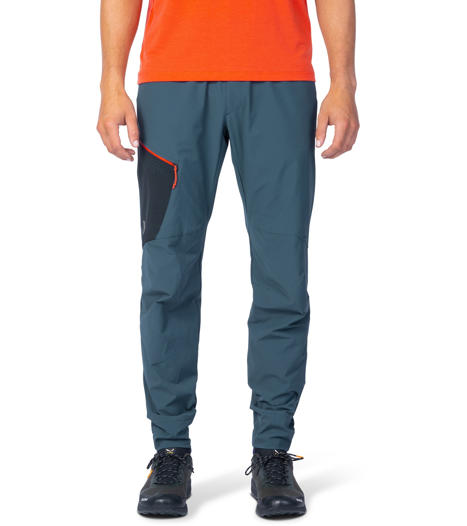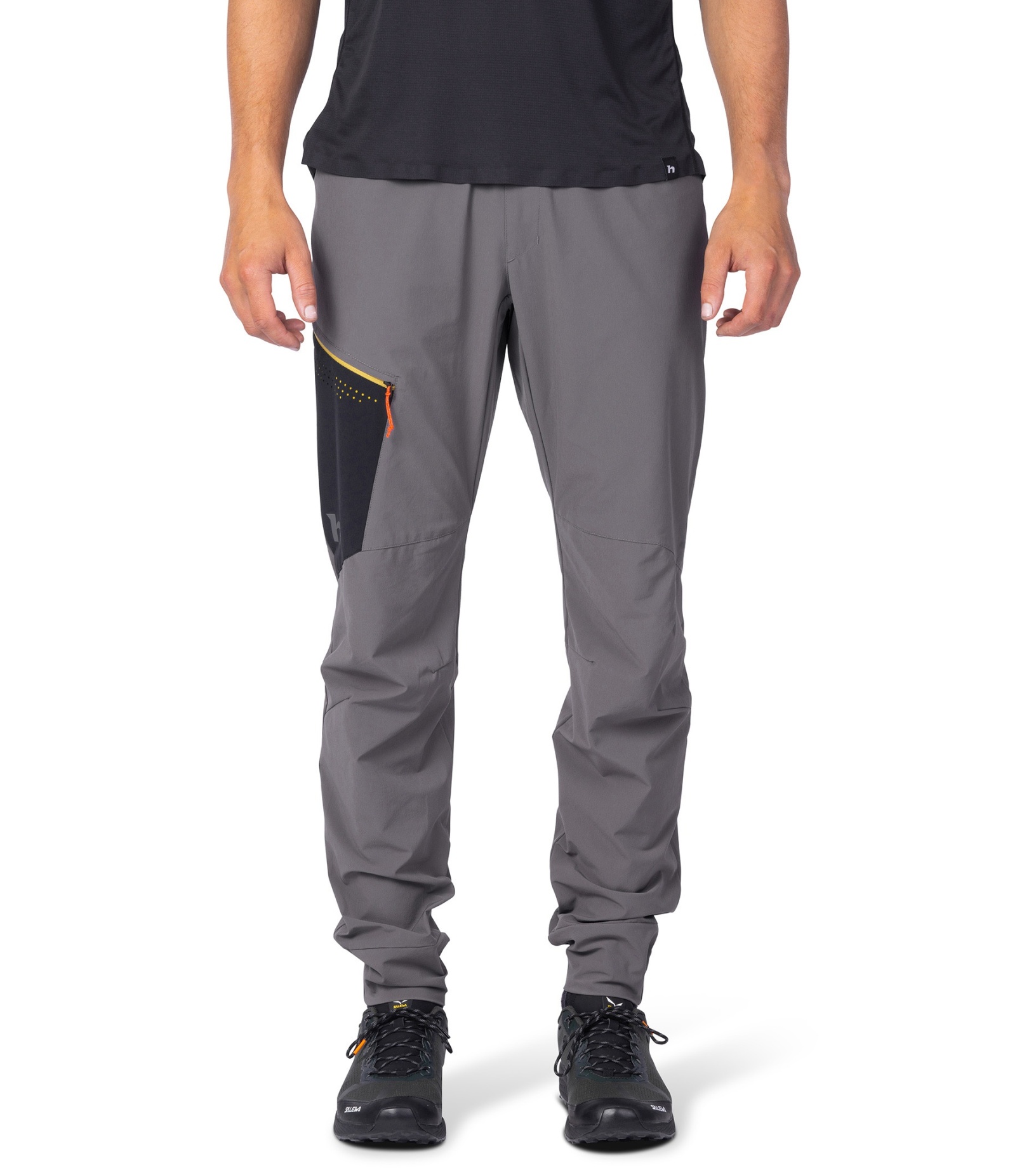 Dolna część nogawek jest lekko zwężana i elastyczna z tyłu dla lepszego dopasowania. Dwie przestronne kieszenie z przodu i jedna kieszeń na udzie z wysokiej jakości zamkiem błyskawicznym YKK umożliwiają praktyczne przechowywanie drobnych przedmiotów. Drukowane kieszenie wewnętrzne nadają modelowi nowoczesny wygląd. Powierzchnia spodni została pokryta impregnatem DWR-C0, który nie zawiera szkodliwych substancji fluorowęglowodorowych, dzięki czemu jest bardziej przyjazny dla środowiska (wolny od PFC).