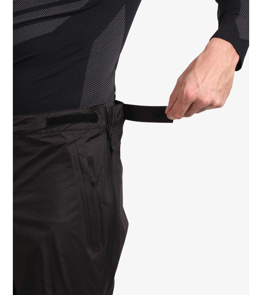 Wodoodporne, długie spodnie męskie Kilpi ALPIN-M stanowią warstwę ochronną przed wiatrem, zimnem i deszczem. Ważą zaledwie 300 g w rozmiarze M. Zaletą jest materiał membranowy SIBERIUM 30,000 2,5L z całkowicie uszczelnionymi szwami, wysoką wodoodpornością i oddychalnością. Spodnie są bardzo lekkie i można je łatwo spakować do dołączonego worka, dzięki czemu zawsze możesz mieć je spakowane w plecaku. Spodnie mają luźniejszy krój i pas regulowany na rzep. Na łydkach znajdują się również zapięcia na rzep, dzięki którym możesz dopasować spodnie do swoich potrzeb. Największą zaletą tych spodni jest to, że mają boczne zamki na całej długości, dzięki czemu można je łatwo założyć na spodnią warstwę odzieży bez konieczności zdejmowania butów. Docenisz je szczególnie podczas pieszych wędrówek po górach, jazdy na nartach w Alpach lub innych aktywności outdoorowych lub uprawiania sportu, podczas których chcesz pozostać suchy. Imitujące zamki błyskawiczne umożliwiają dostęp do kieszeni kalesonów. Spodnie Kilpi ALPIN-M oferujemy w uniwersalnym czarnym kolorze, które stanowią nieodłączny element wyposażenia każdego poszukiwacza przygód.