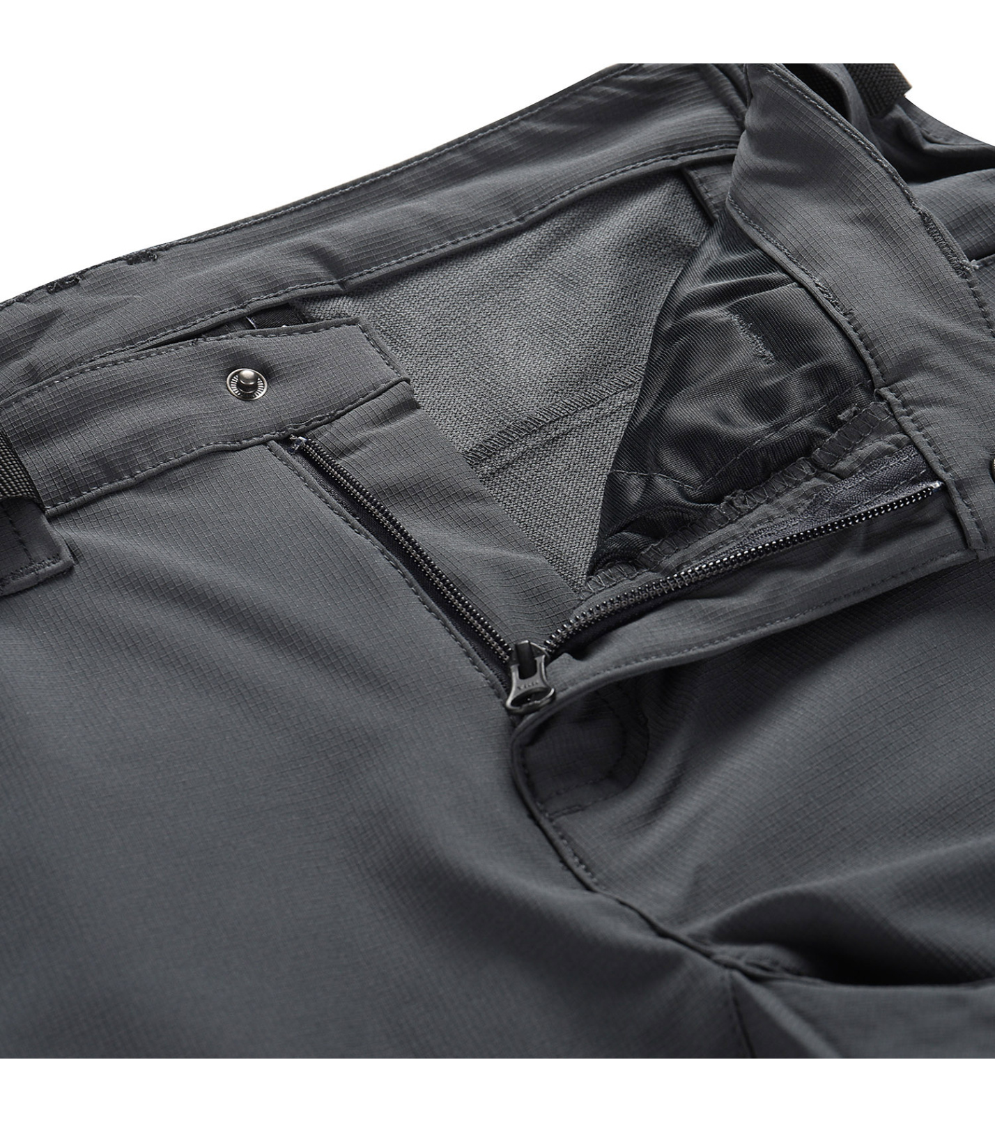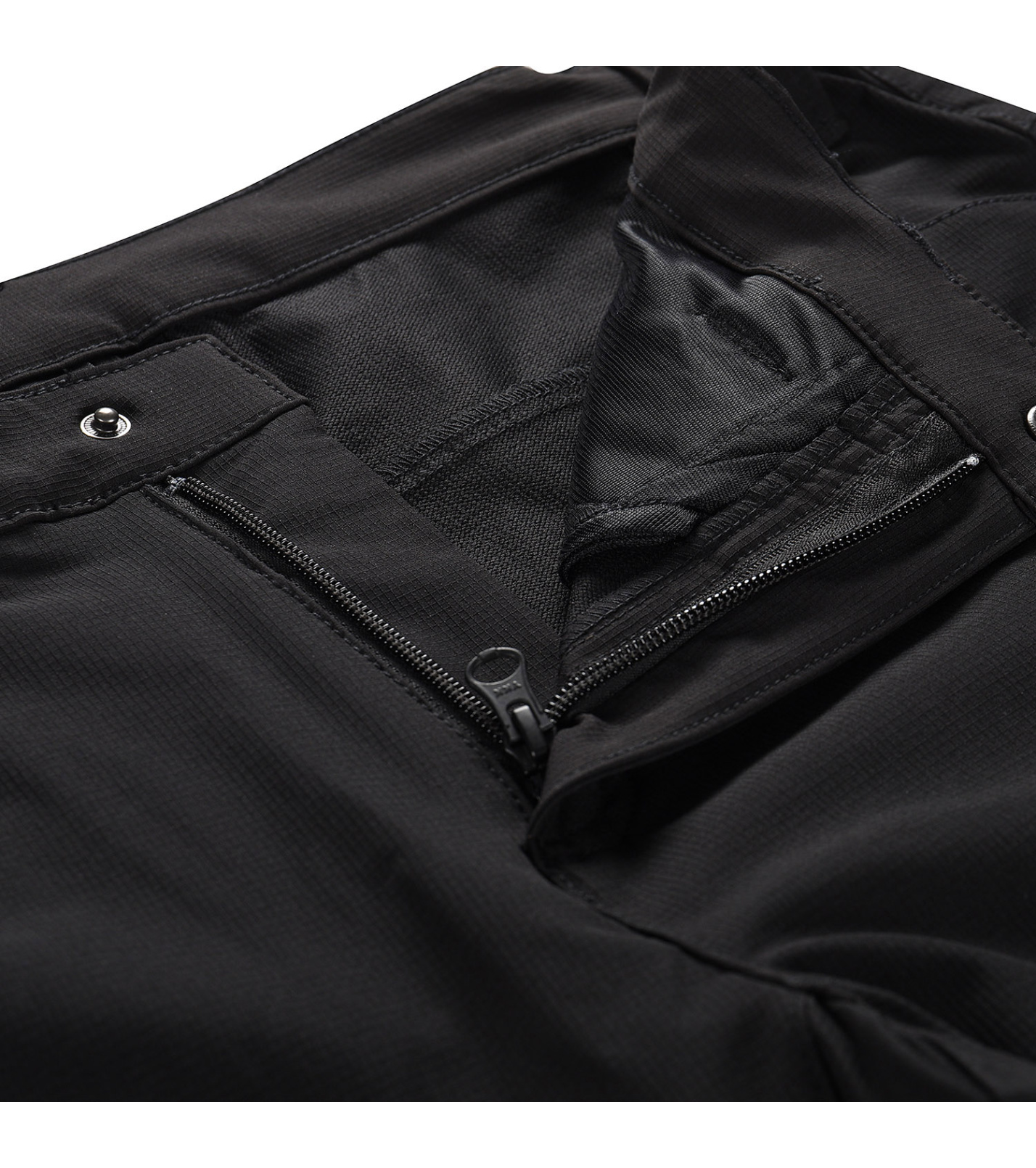Męskie spodnie softshell wykonane są z paroprzepuszczalnego, szybkoschnącego, elastycznego i strukturyzowanego materiału z wykończeniem SOFTSHELL COOLDRY, które zapewnia doskonałe właściwości gwarantujące komfort noszenia w różnych warunkach. Krój spodni jest pół-dopasowany, co zapewnia optymalne połączenie swobody ruchów i eleganckiego wyglądu. Tylna część talii jest podwyższona i wyposażona w szlufki, co zapewnia nie tylko wygodę, ale także możliwość indywidualnej regulacji szerokości pasa w zależności od potrzeb. Spodnie wyposażone są w pasek umożliwiający dalszą regulację. Anatomicznie ukształtowane kolana zwiększają komfort i pozwalają na nieograniczoną swobodę ruchu podczas różnorodnych aktywności na świeżym powietrzu. W sumie spodnie mają trzy kieszenie, dwie z przodu i jedną z boku, wszystkie wyposażone w zamki błyskawiczne zapewniające bezpieczne przechowywanie. Odblaskowy nadruk z boku dodaje spodniom nowoczesnego wyglądu i zwiększa widoczność. Dłuższe uchwyty suwaków zaprojektowano z myślą o łatwej obsłudze i praktycznym zastosowaniu.