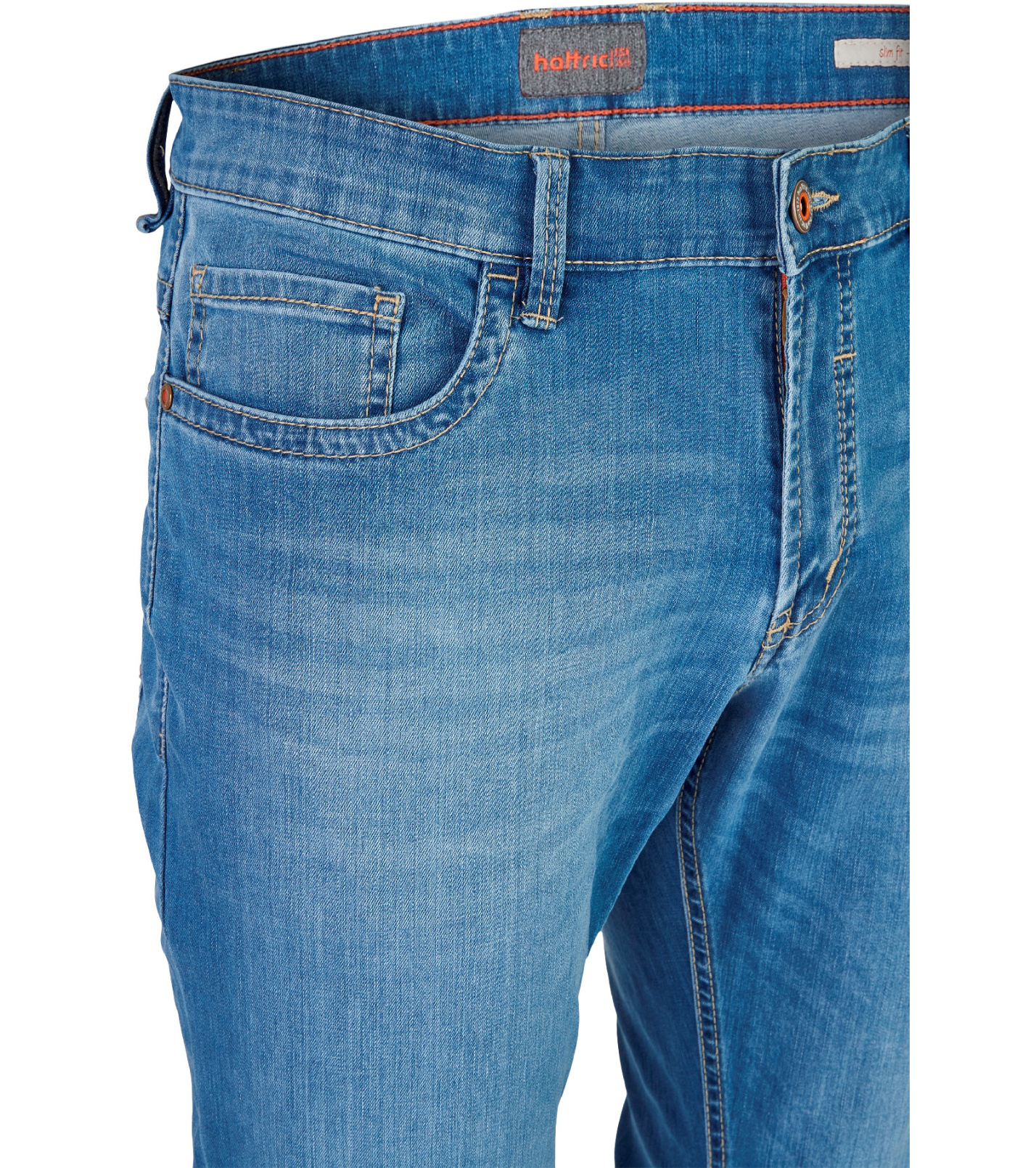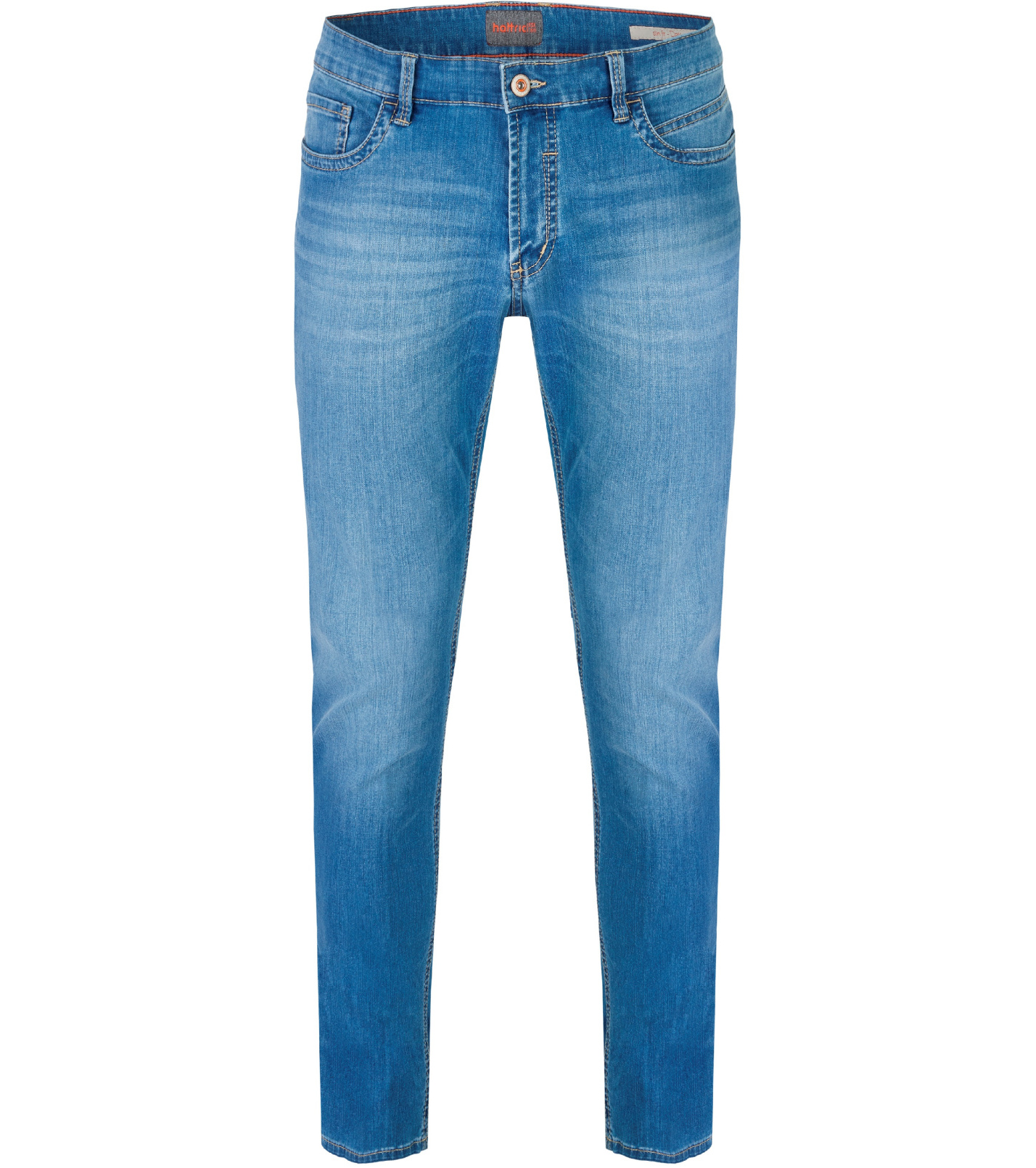 Jeansy męskie zapinane na zamek. Markowe jeansy mają węższy krój i węższą nogawkę u dołu. Jeansy mają dwie klasyczne, pojemne kieszenie z przodu i dwie z tyłu oraz jedną małą kieszonkę, która jest częścią prawej kieszeni przedniej. Z tyłu spodni naszyta jest skórzana metka z nazwą marki. Spodnie są nieco węższe w udach i kolanach.