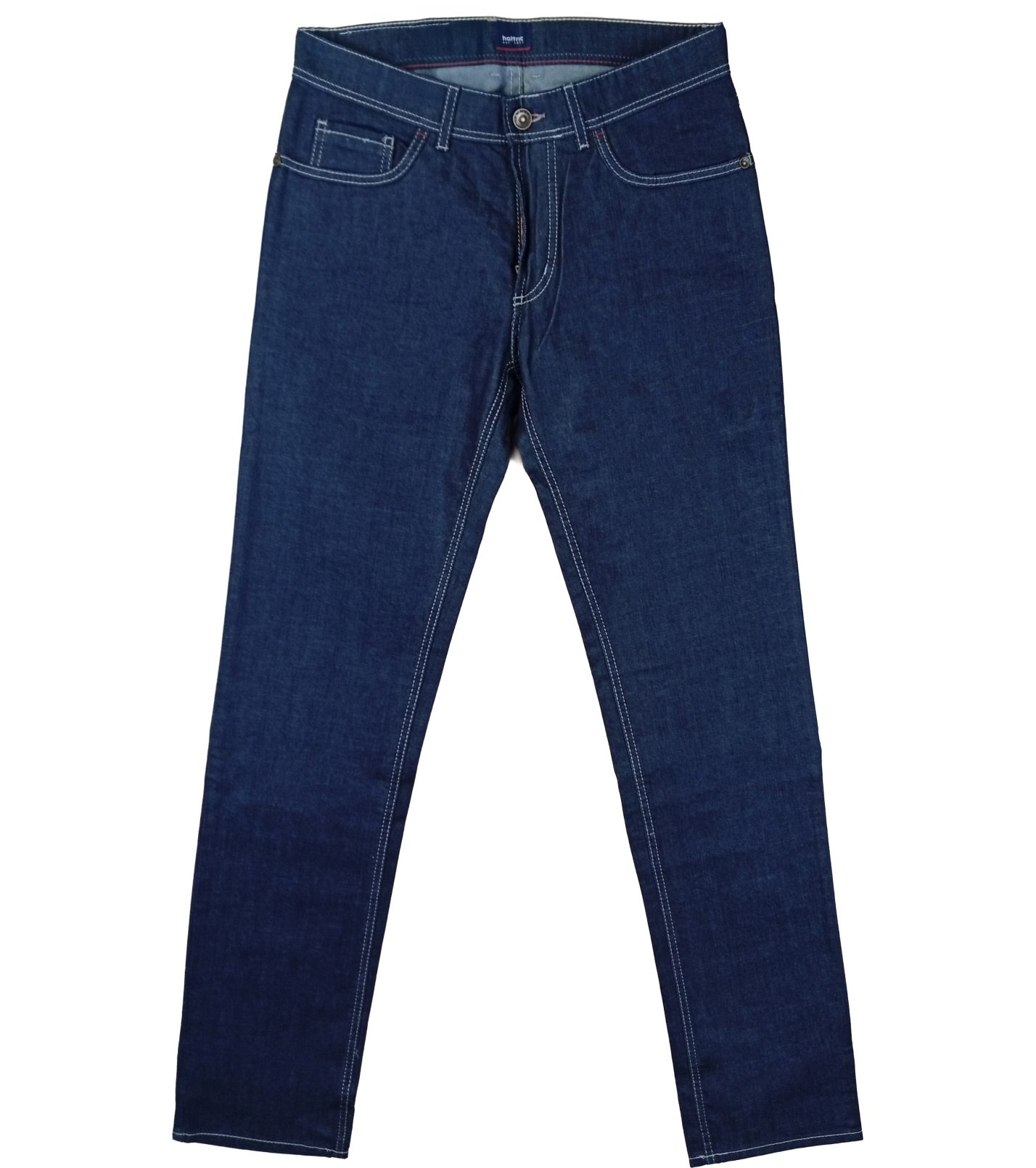 Męskie jeansy Hattric w klasycznym niebieskim kolorze z wyraźniejszymi kontrastowymi przeszyciami. Nowoczesny i wygodny krój idealnie nadaje się do noszenia na co dzień i na co dzień. Wysokiej jakości denim zapewnia trwałość i długowieczność, a subtelne przetarcia nadają spodniom swobodny wygląd.