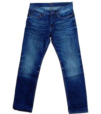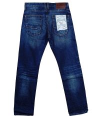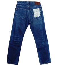 Męskie niebieskie jeansy Antonio z zamkiem błyskawicznym. Markowe jeansy mają klasyczny krój z węższą nogawką u dołu. Mają dwie przednie i dwie tylne klasyczne pojemne kieszenie oraz jedną małą kieszeń, która jest częścią prawej przedniej kieszeni. Z tyłu spodni naszyta jest skórzana metka z marką.