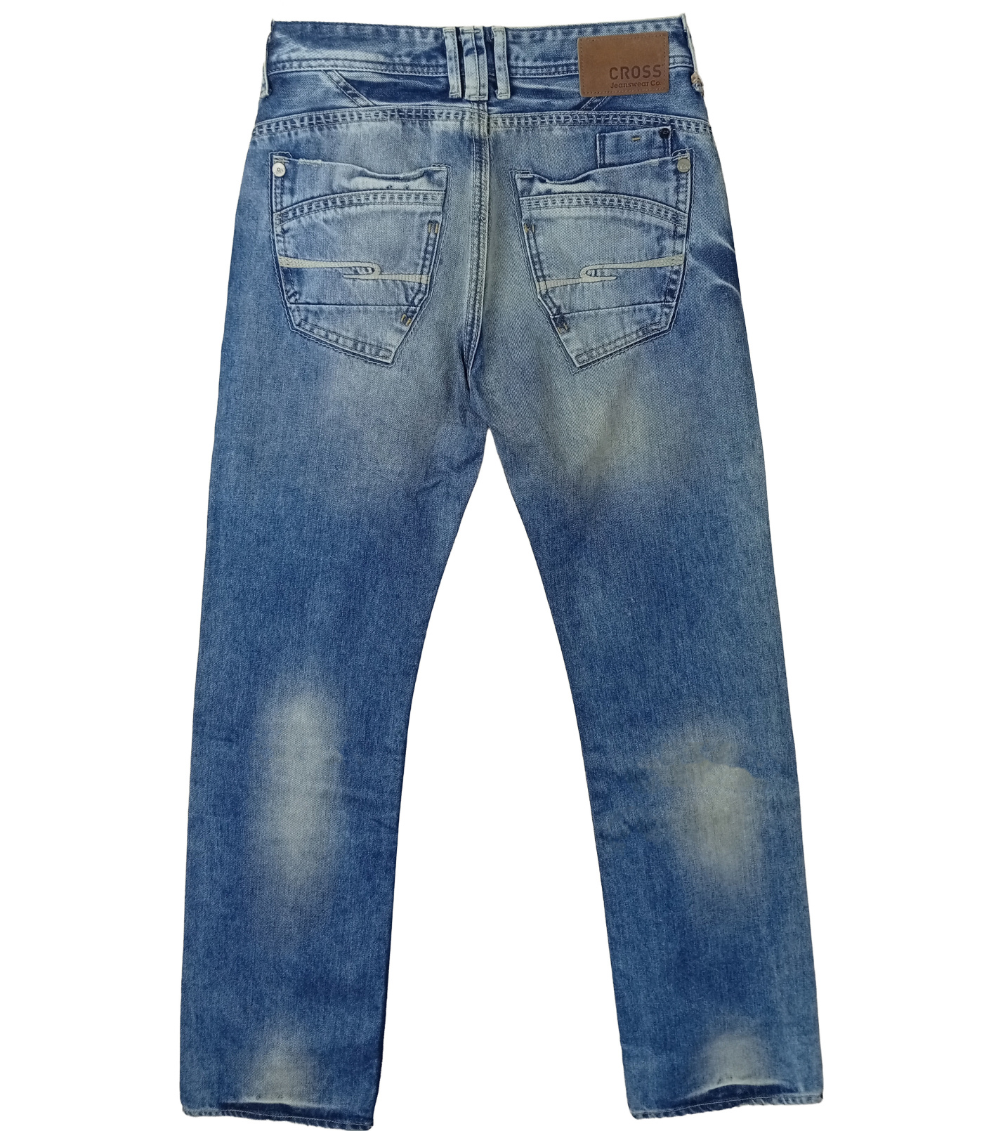 Jeansy męskie Cross oferują wygodny krój z klasycznym stanem i zapięciem na zamek błyskawiczny, idealny do noszenia na co dzień. Jeansy mają niebieski odcień z wyraźnym efektem przetarcia, co nadaje im stylowy wygląd bez uszczerbku na jakości. Dzięki umiarkowanej elastyczności materiału, jeansy te idealnie nadają się na aktywny dzień i do różnorodnych stylizacji – zarówno z luźnym T-shirtem, koszulą, jak i swetrem.