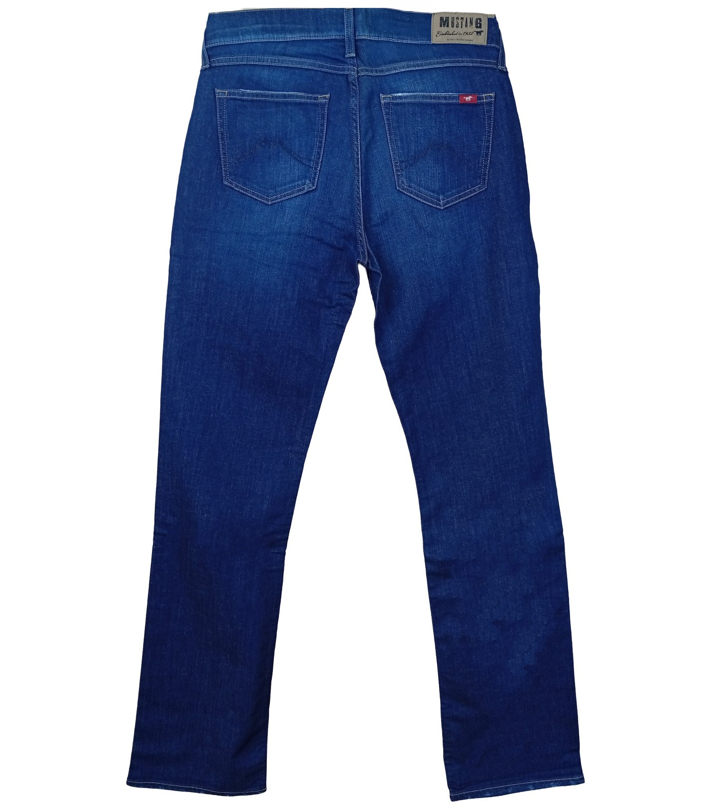 Stylowe jeansy męskie o klasycznym kroju, wykonane z wysokiej jakości denimu. Wygodny materiał z lekką domieszką stretchu zapewnia wygodę podczas codziennego noszenia. Jeansy zapinane są na zamek i guzik, mają pięć kieszeni i proste nogawki. Ciemnoniebieski kolor z subtelnym haftem z przodu nadaje jeansom nowoczesny i uniwersalny wygląd, który z łatwością można łączyć zarówno z koszulą, jak i T-shirtem.