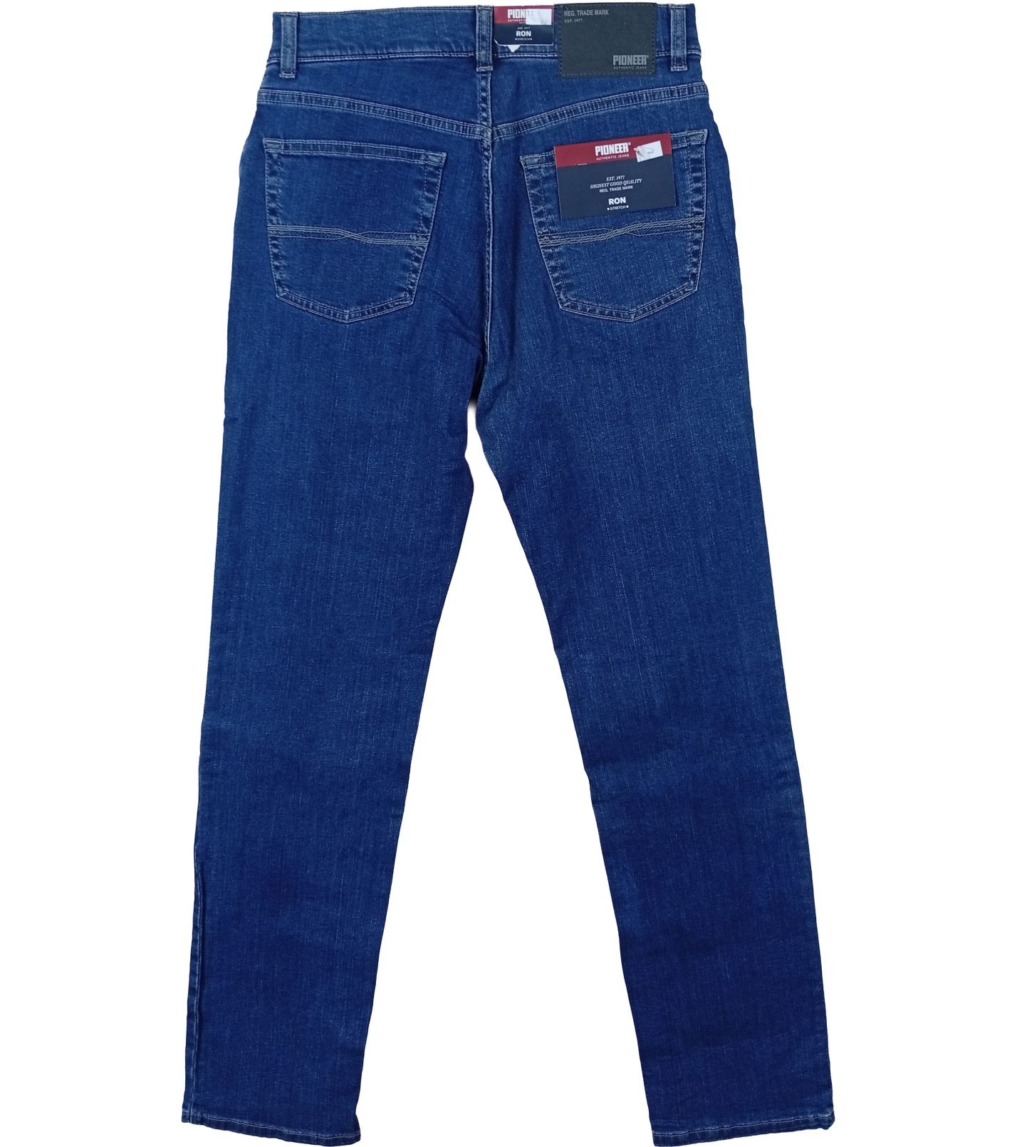 Męskie jeansy Pioneer Ron w kolorze granatowym to klasyka, która sprawdzi się na co dzień. Wykonane z wysokiej jakości denimu z dodatkiem elastanu dla większego komfortu i swobody ruchów. Spodnie mają prosty krój, zapięcie na zamek i guzik, pięć kieszeni oraz subtelne, kontrastowe przeszycia. To uniwersalny i ponadczasowy model, który z łatwością można zestawić z koszulą lub luźnym T-shirtem.