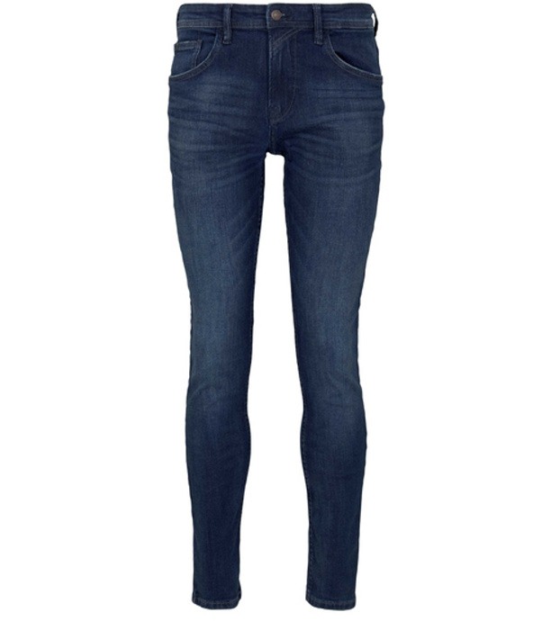 Jeansy męskie marki Tom Tailor z niskim stanem i wąskimi nogawkami. Jeansy zapinane są na zamek błyskawiczny i guzik. Prosty design z logo z tyłu pasa.