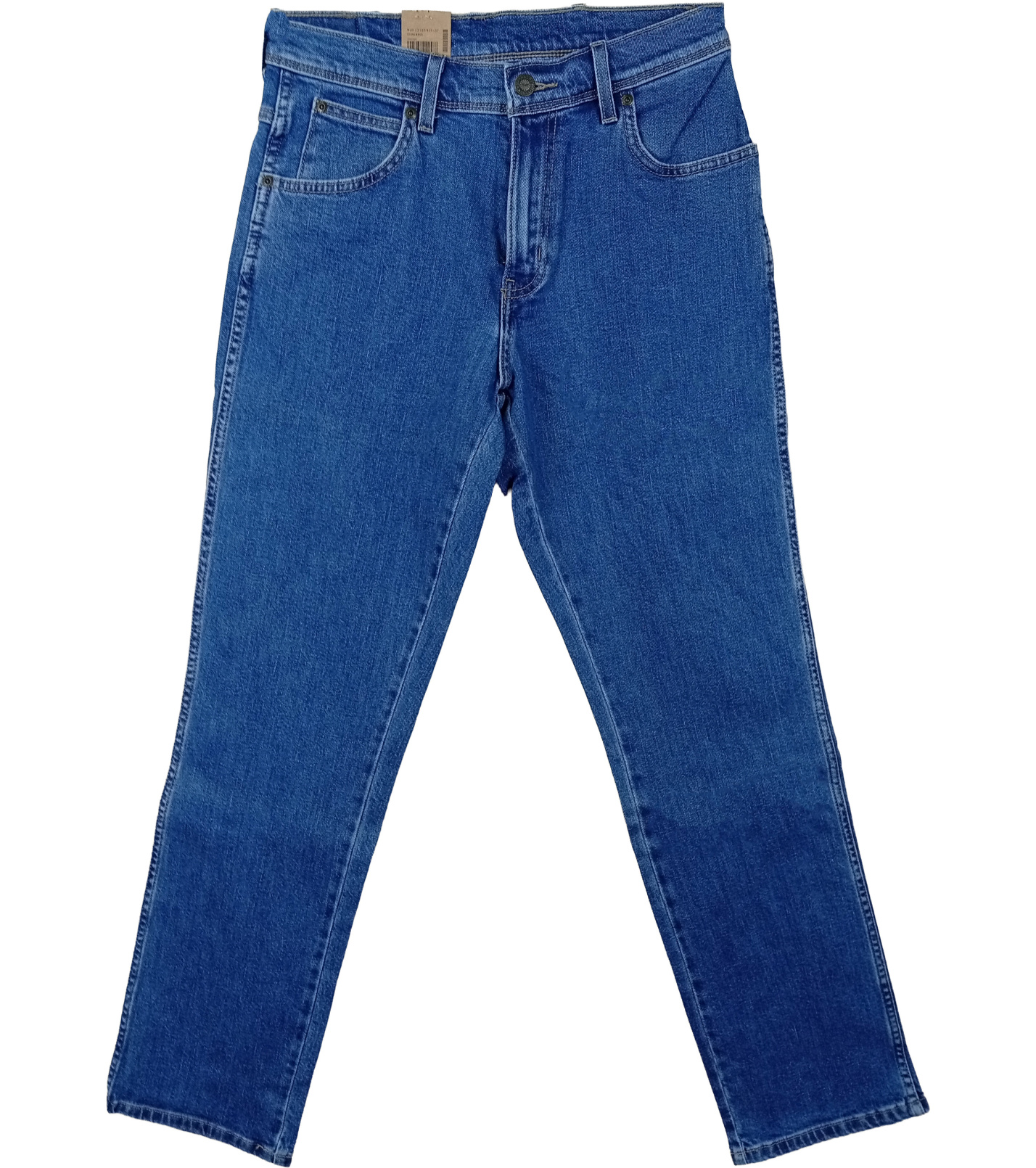 Klasyczne, wytrzymałe i ponadczasowe jeansy męskie. Wykonane z wytrzymałego denimu bawełnianego, zapewniają niezawodność i trwałość na co dzień. Wygodny krój, tradycyjne zapięcie na suwak i guzik oraz pięć kieszeni podkreślają autentyczny styl Wranglera.