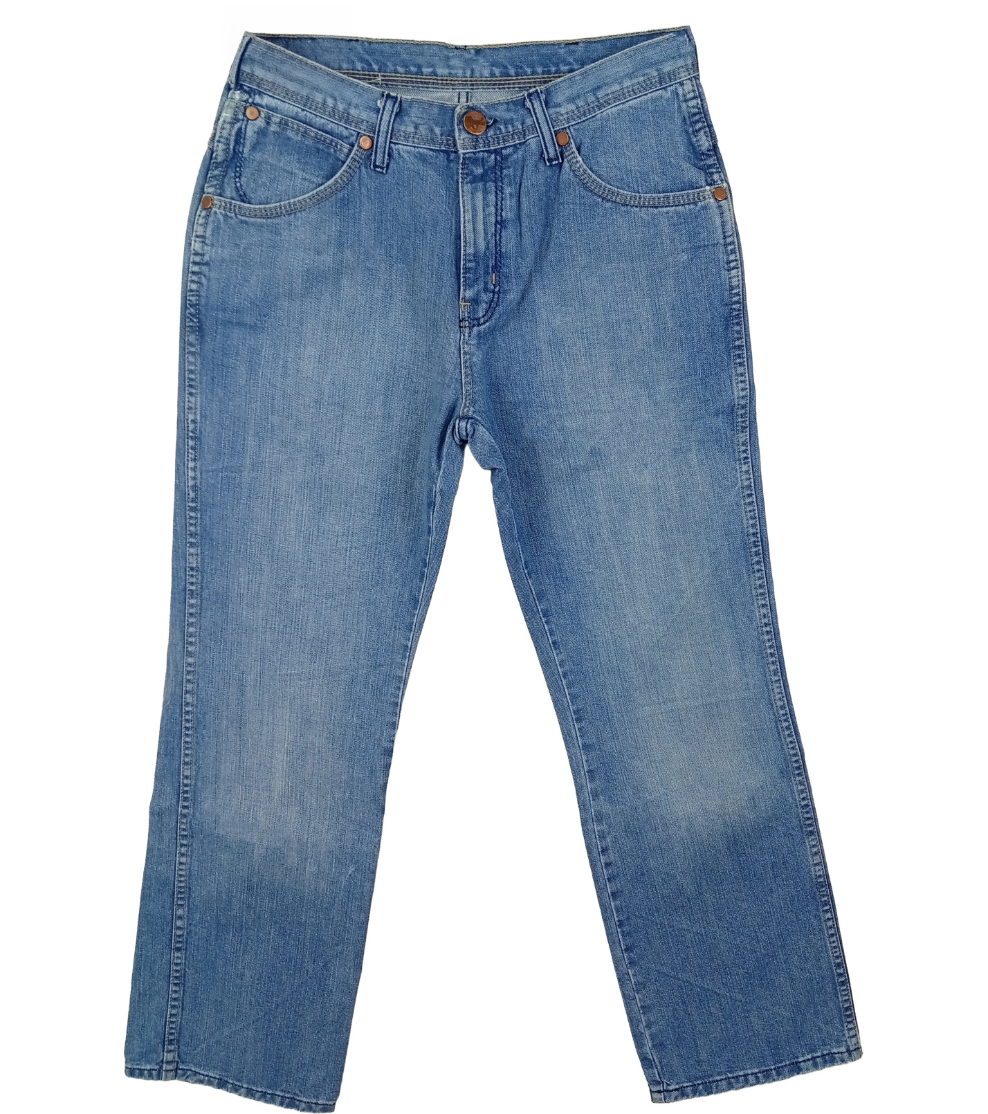 Męskie jeansy Wrangler Alaska z klasycznego, jasnoniebieskiego denimu charakteryzują się wygodnym, regularnym krojem, idealnym do noszenia na co dzień. Mają średni stan, zapięcie na zamek błyskawiczny i guzik oraz pięć kieszeni z charakterystycznym przeszyciem w kształcie litery „W” na tylnych kieszeniach.