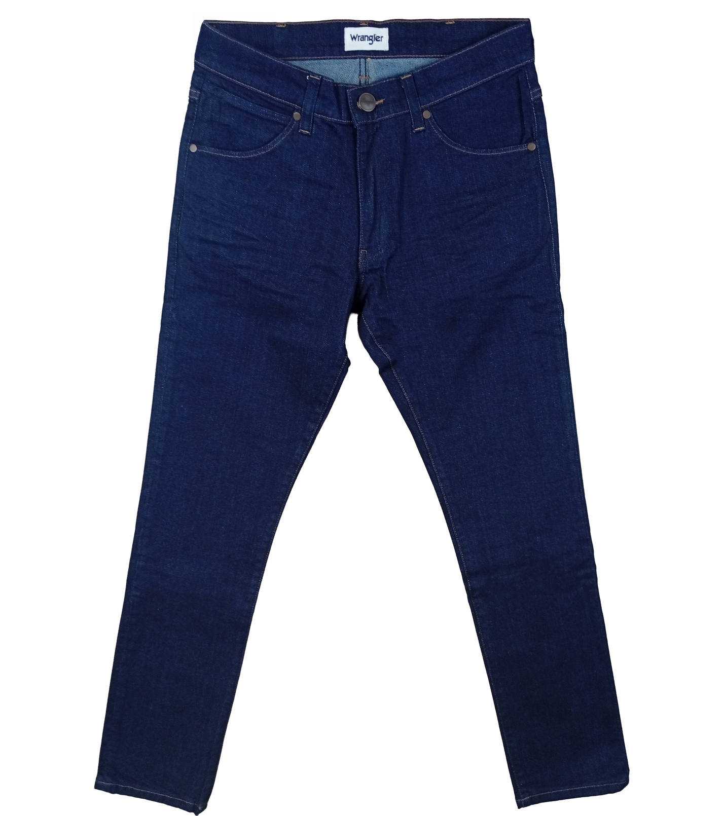 Męskie jeansy Wrangler o dopasowanym kroju, zapewniające nowoczesny wygląd i wygodę noszenia. Ciemnoniebieski denim bez widocznych przetarć prezentuje się elegancko i uniwersalnie – z łatwością można je zestawić z T-shirtem, koszulą i bluzą. Klasyczny krój z pięcioma kieszeniami uzupełnia dyskretna skórzana metka Wrangler na tylnej kieszeni oraz charakterystyczne przeszycie w kształcie litery „W”.