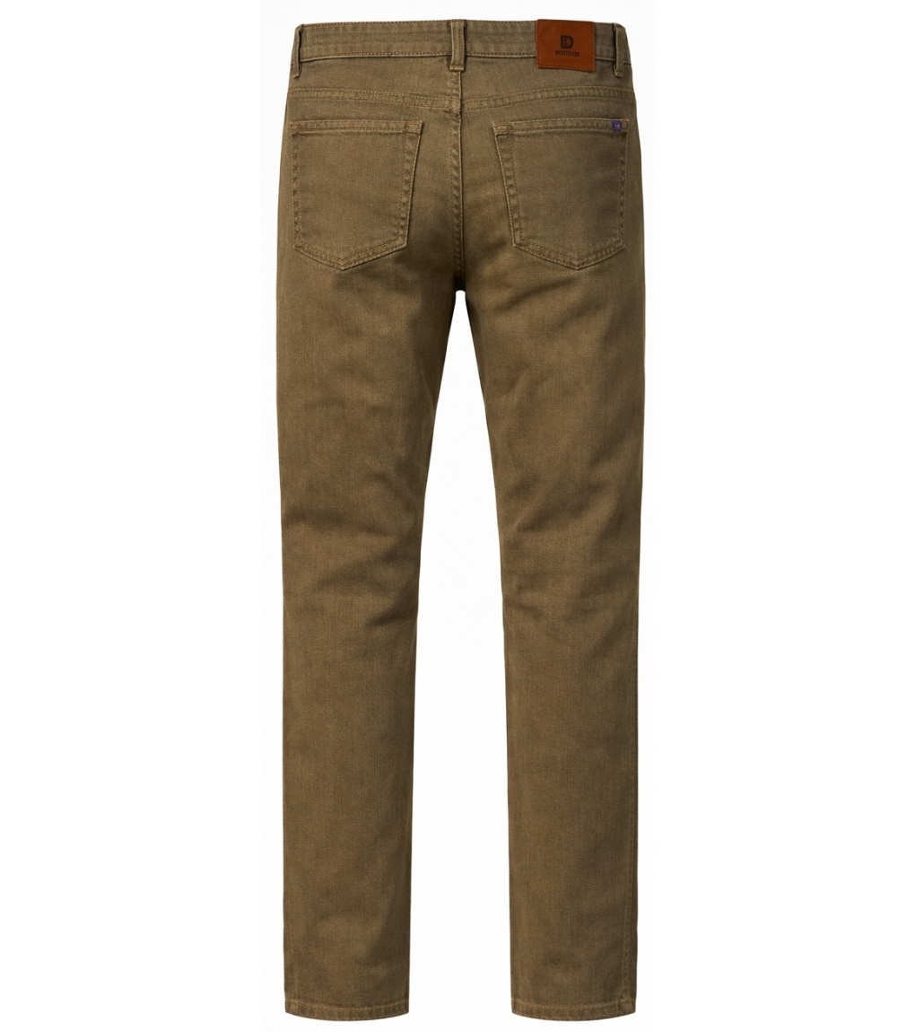 Brązowe spodnie o klasycznym kroju z prostymi nogawkami, które prezentują się elegancko i ponadczasowo. Delikatny haft nadaje materiałowi naturalny, swobodny wygląd. Spodnie wykonane są z wysokiej jakości, solidnej tkaniny, która zapewnia wygodę i trwałość. Zapinane na guzik i zamek błyskawiczny, mają pięć kieszeni i subtelne przeszycia. To uniwersalny model, który sprawdzi się zarówno na co dzień, jak i w bardziej stylowych stylizacjach.