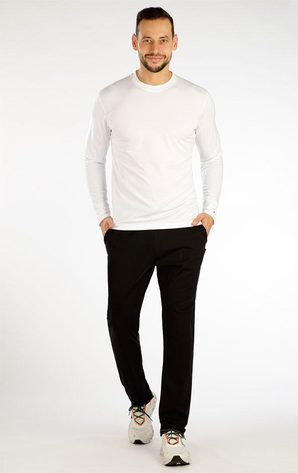 Długie spodnie sportowe męskie. Wygodny, luźny krój z elastyczną talią i sznurkiem ściągającym. Spodnie mają kieszenie boczne. Skład materiału gwarantuje doskonałą elastyczność i maksymalny komfort noszenia. Materiał szybko schnie.