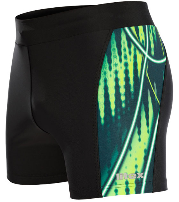 Męskie bokserki sportowe przeznaczone są do aktywnego poruszania się w wodzie, pływania wyczynowego i uprawiania różnych sportów wodnych. Posiadają szeroki elastyczny pas ze sznurkiem ściągającym w środku, który zapewnia stabilne trzymanie i możliwość indywidualnej regulacji. Przednia część jest podszyta dla lepszego krycia i komfortu. Materiał jest odporny na chlor, oddychający, elastyczny i szybkoschnący, co zapewnia komfort podczas intensywnego użytkowania.
