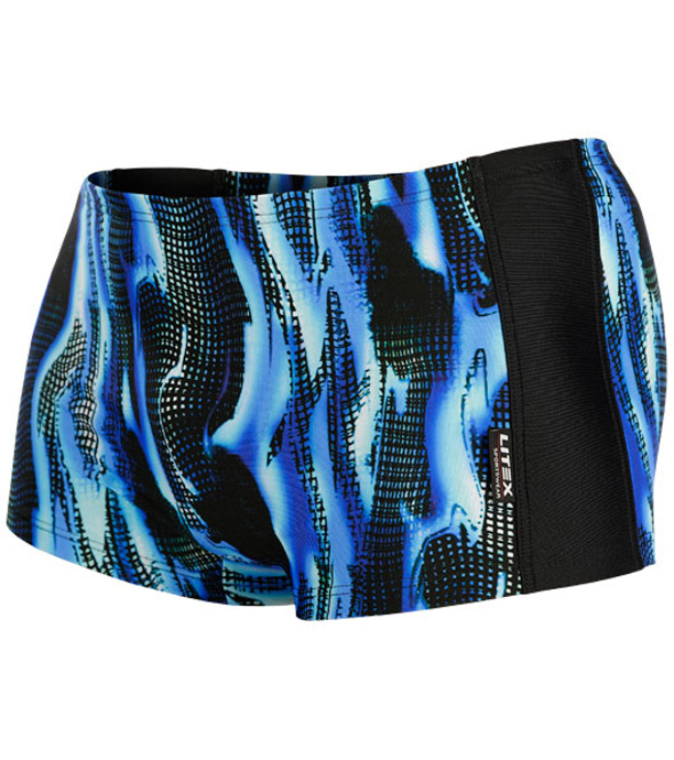 Męskie bokserki kąpielowe. Gumka ze sznurkiem do ściągania. Przednia część jest podszyta.