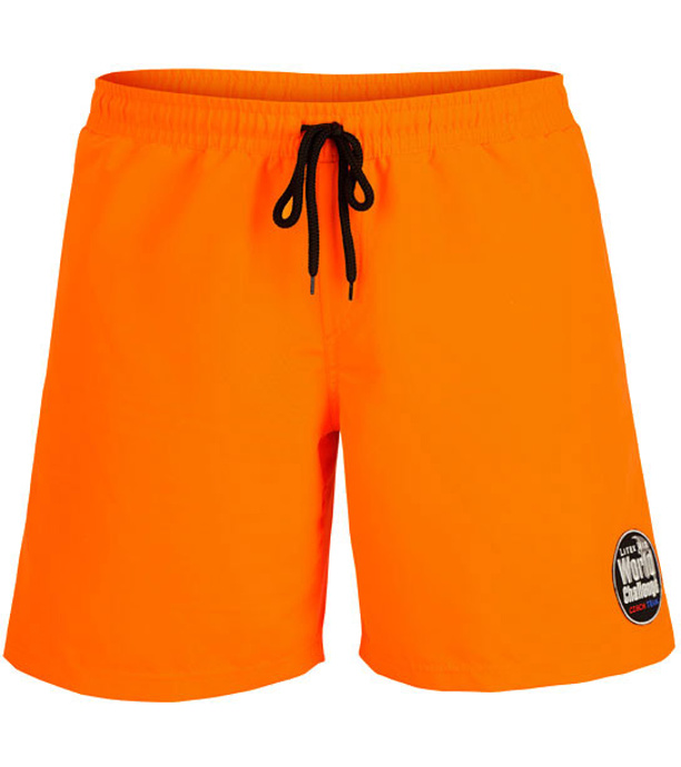 Męskie spodenki kąpielowe. Podszewka z siatki. Kieszenie. Kieszeń z tyłu. Elastyczny pas ze ściągaczem. Długość ok. 44cm.