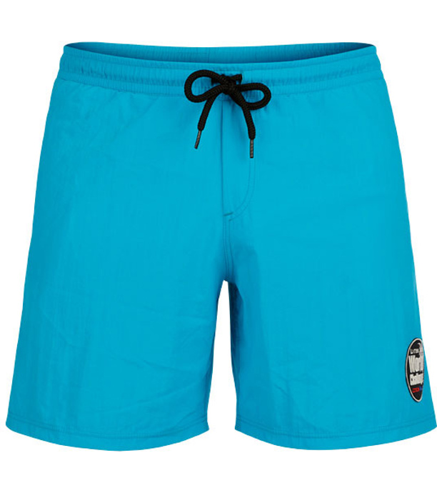Męskie spodenki kąpielowe. Szeroka guma ze sznurkiem ściągającym. Boczne kieszenie z siateczki. Kieszeń z tyłu. Woda zbierająca się w tylnej kieszeni po pływaniu może łatwo odpłynąć przez małe metalowe oczko. Wewnętrzne majtki z siateczki. Długość ok. 44 cm.
