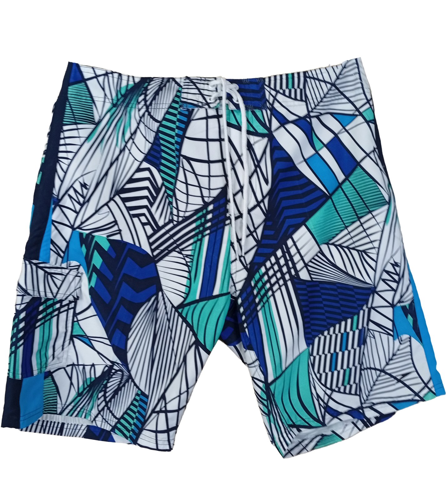 Męskie spodenki kąpielowe Speedo z wyrazistym, geometrycznym nadrukiem w połączeniu niebieskiego, zielonego, czarnego i białego. Dzięki luźnemu krojowi zapewniają maksymalny komfort i swobodę ruchów. Wyposażone są w ściągacz w pasie dla idealnego dopasowania, a z boku znajduje się praktyczna kieszeń. Szybkoschnący materiał zapewnia komfort noszenia przez cały dzień, zarówno na basenie, jak i na plaży.