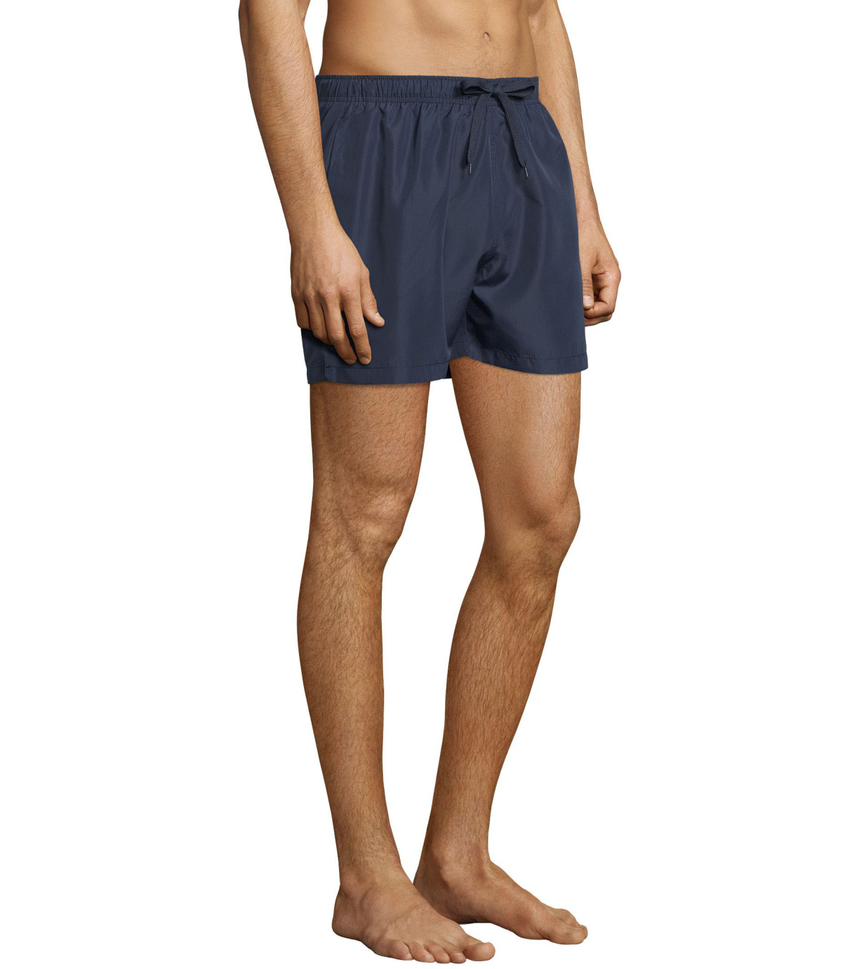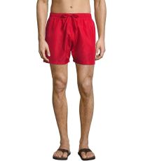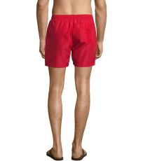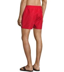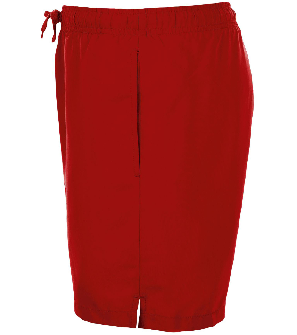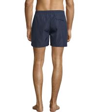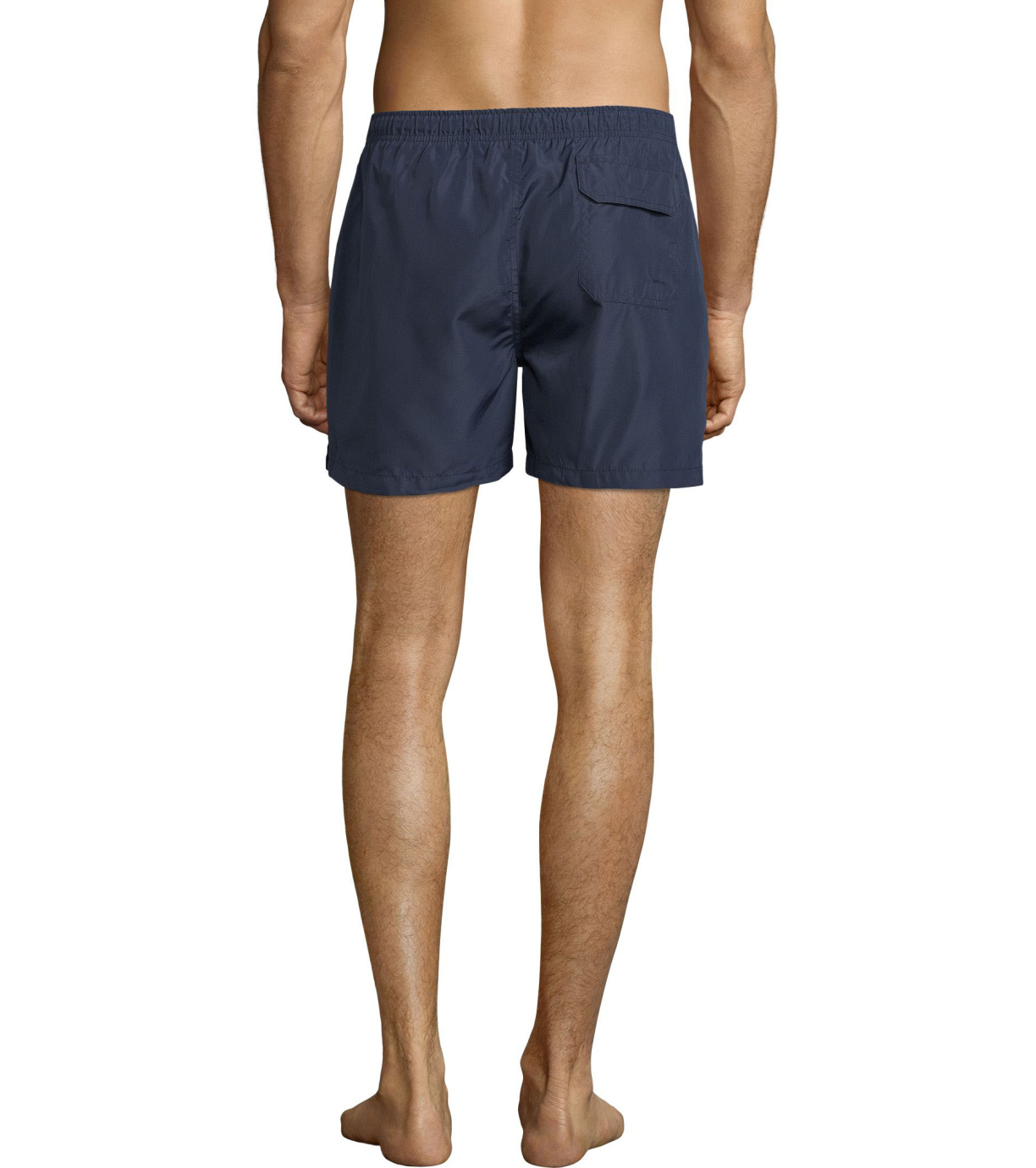 Męskie spodenki kąpielowe mają elastyczną talię. Dzięki sznurkowi można je regulować. Spodenki mają 2 kieszenie boczne oraz kieszeń tylną z klapką na rzep. Nadają się do sublimacji.