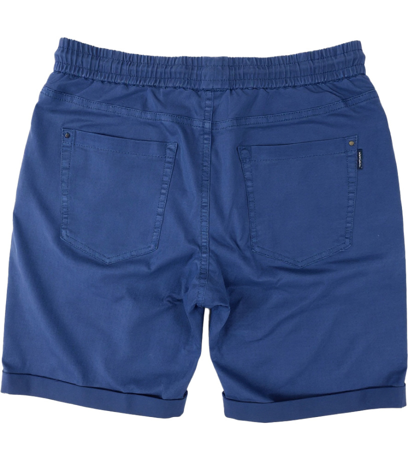 Wygodne męskie szorty w kolorze granatowym, idealne do noszenia na co dzień i w czasie wolnym. Elastyczny pas ze sznurkiem zapewnia idealne dopasowanie i maksymalny komfort. Klasyczne kieszenie boczne pomieszczą drobiazgi, a prosty krój bez wyrazistych elementów pozwala na łatwe łączenie z koszulką lub bluzą. Przyjemny materiał sprawdzi się w cieplejsze dni, zapewniając komfort podczas ruchu i odpoczynku.