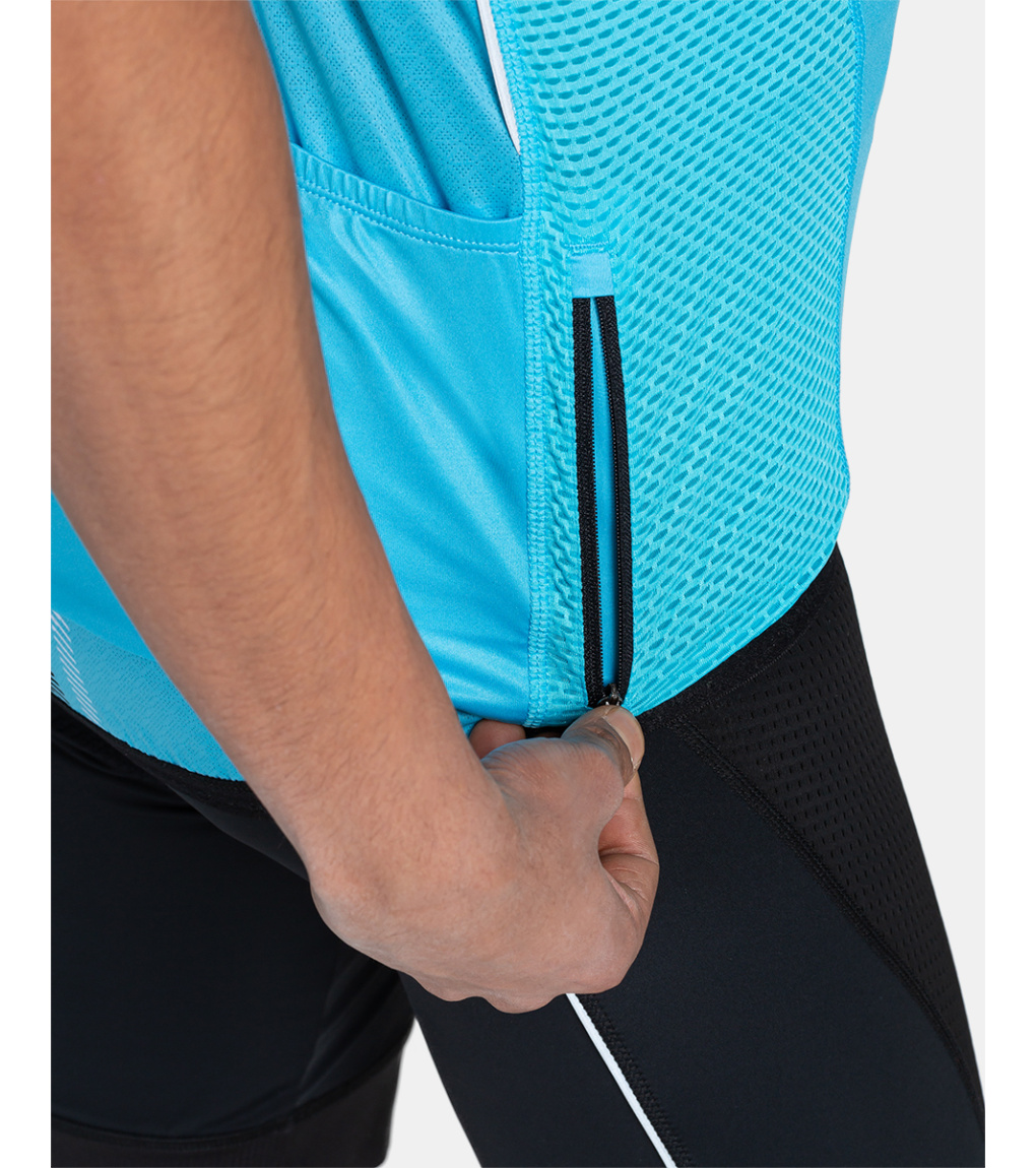 Męska koszulka kolarska z krótkim rękawem Kilpi CORRIDOR-M jest idealna do kolarstwa szosowego lub górskiego. Materiał chłodzący OPTI-DRY jest lekki, elastyczny i szybkoschnący. Oddychające wstawki pod pachami i po bokach są przyjemnie lekkie i przewiewne. Niski kołnierz zakończony jest osłoną podbródka. Profilowane części dopasowują się do krzywizn ciała, doskonale je otulając, a płaskie szwy nie podrażniają skóry. Dolny brzeg z silikonem nie podwija się podczas jazdy. Z tyłu znajdują się trzy obszerne kieszenie z kieszonką zapinaną na zamek, a na plecach, bokach i rękawach umieszczono kilka elementów odblaskowych.